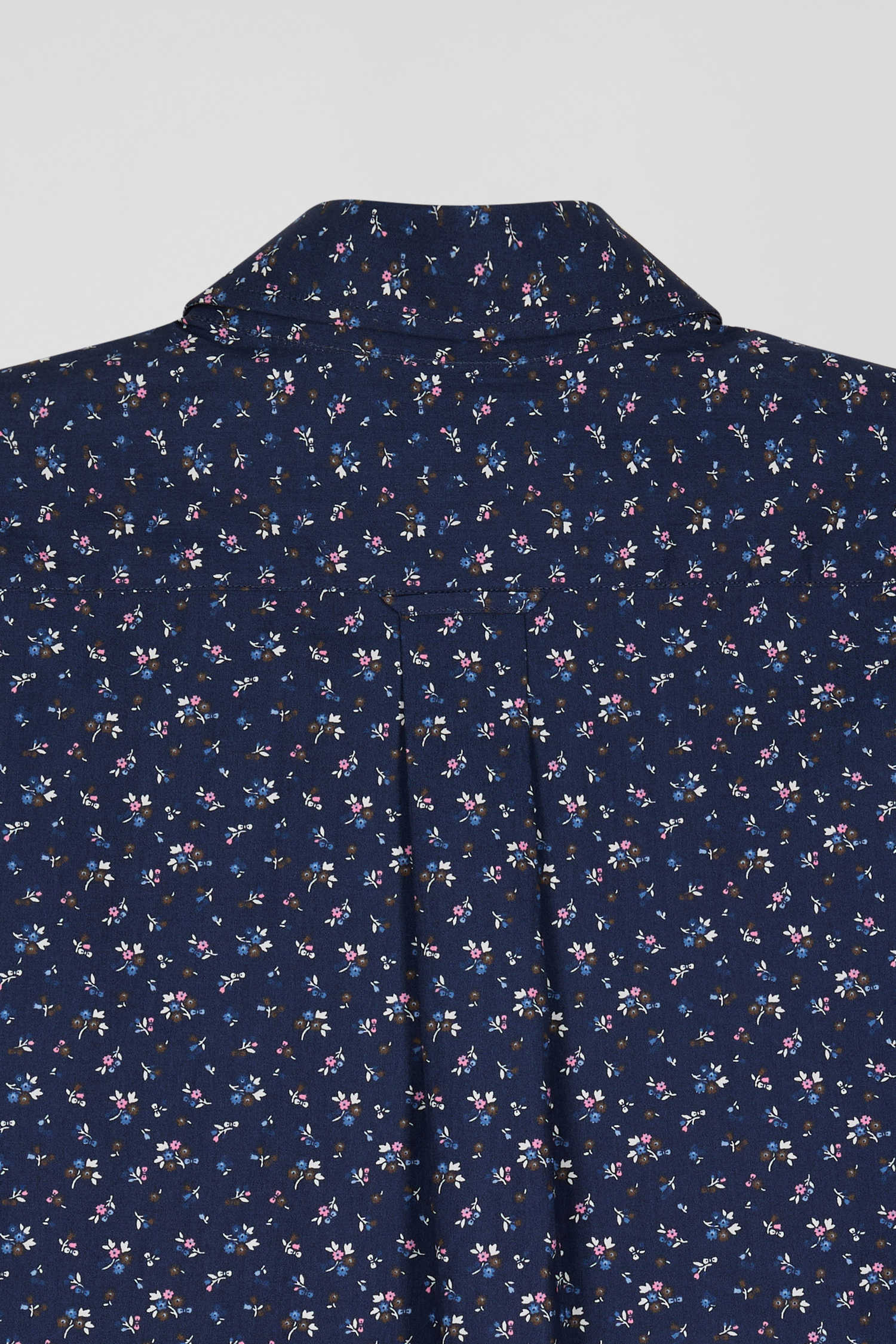 Chemise en popeline de coton bleu marine à microimprimé fleurs coupe Regular