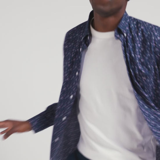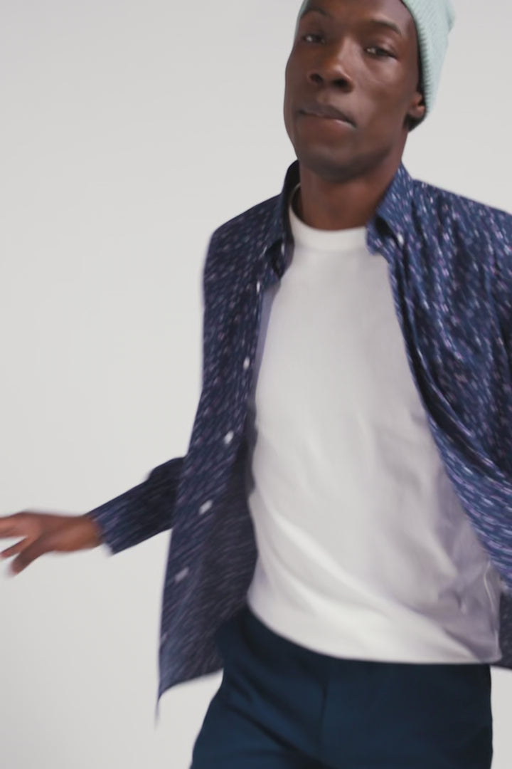 Valeur sûre du vestiaire masculin Eden Park, la chemise homme à microimprimé arbore un élégant motif floral sur un fond marine ou écru. Ce modèle à la coupe droite est réalisé dans une confortable popeline de coton.