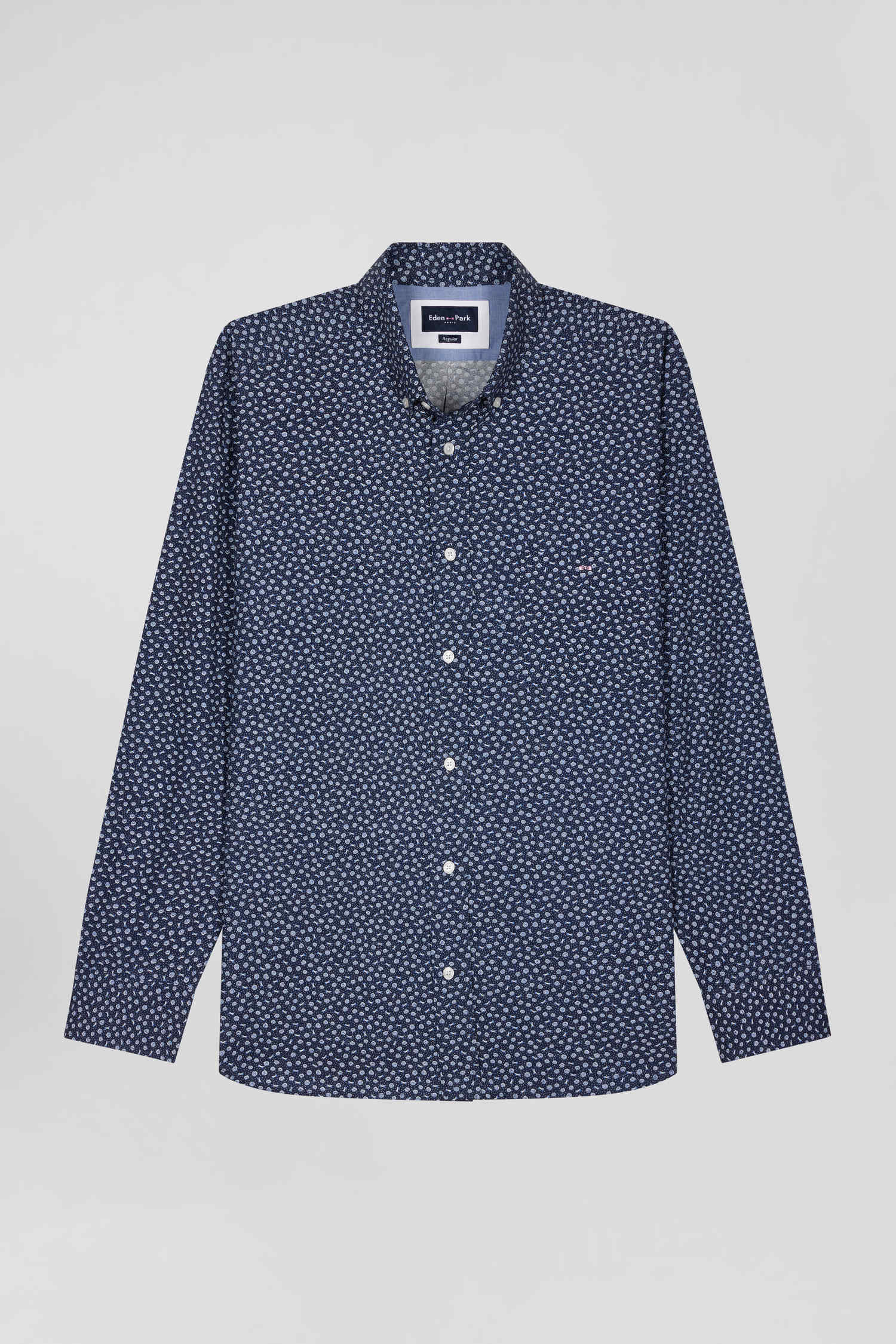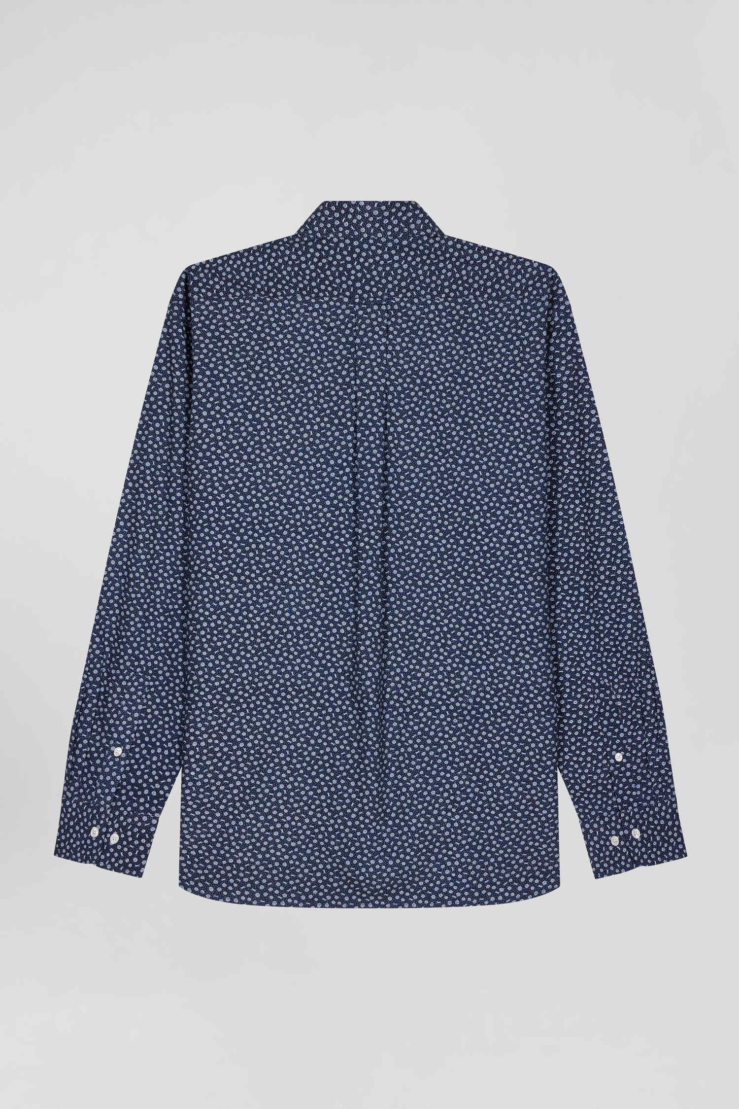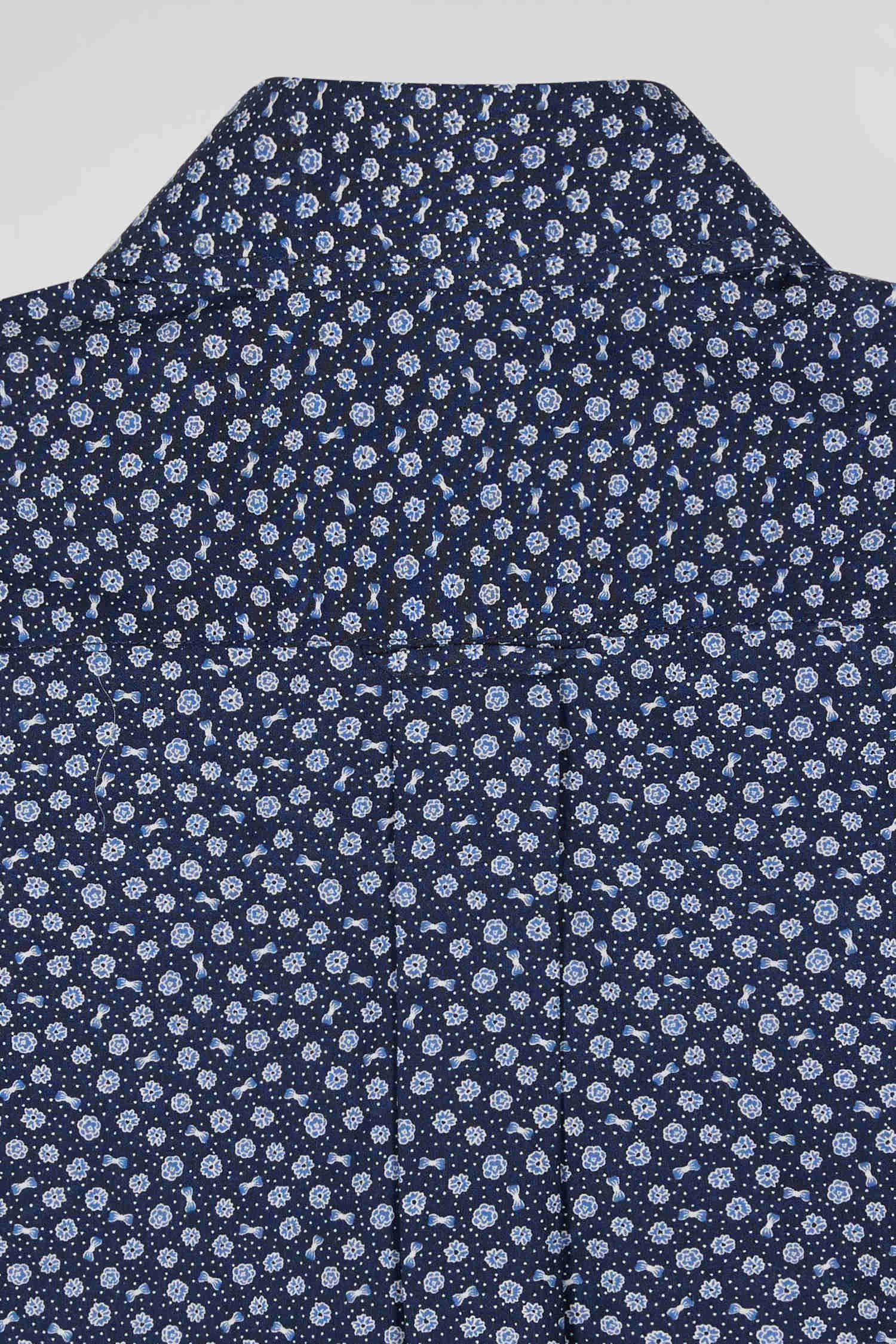 Chemise en popeline de coton bleu marine à microimprimé floral coupe Regular