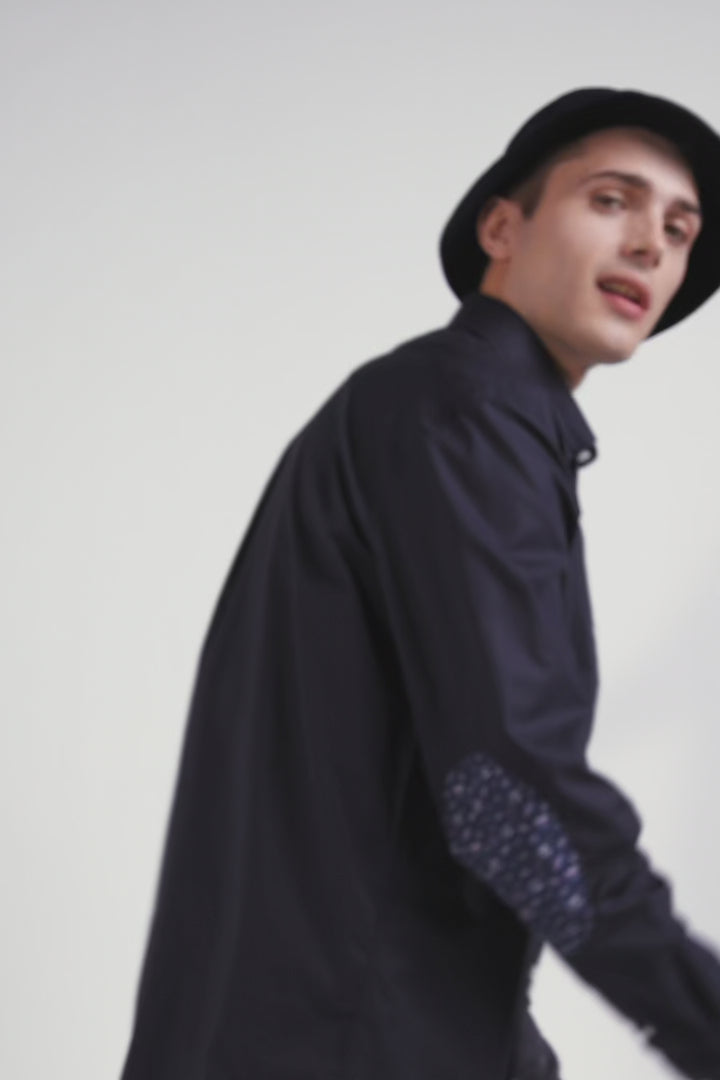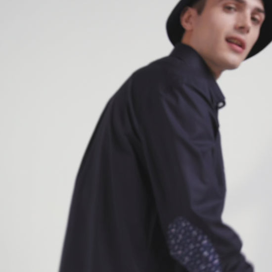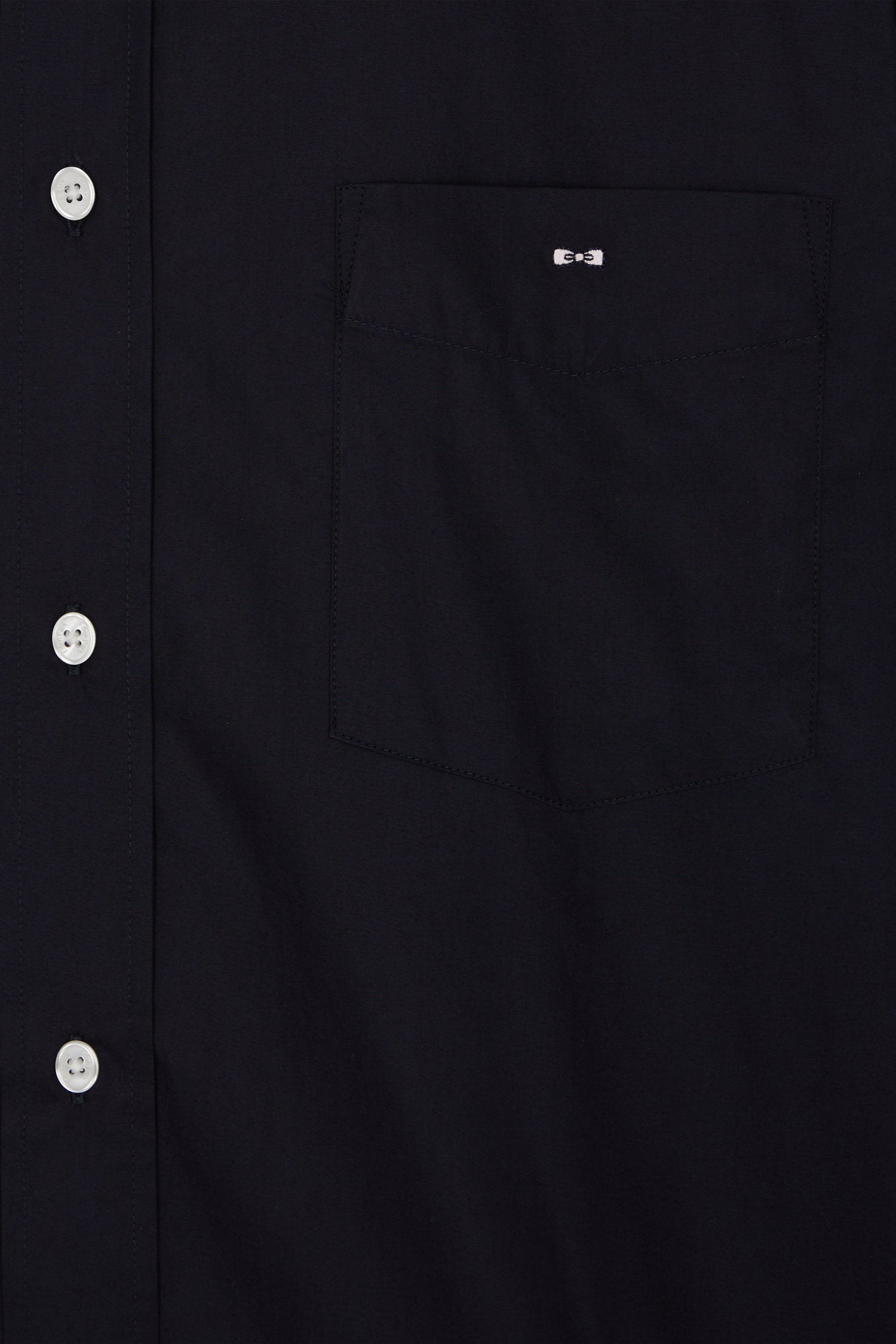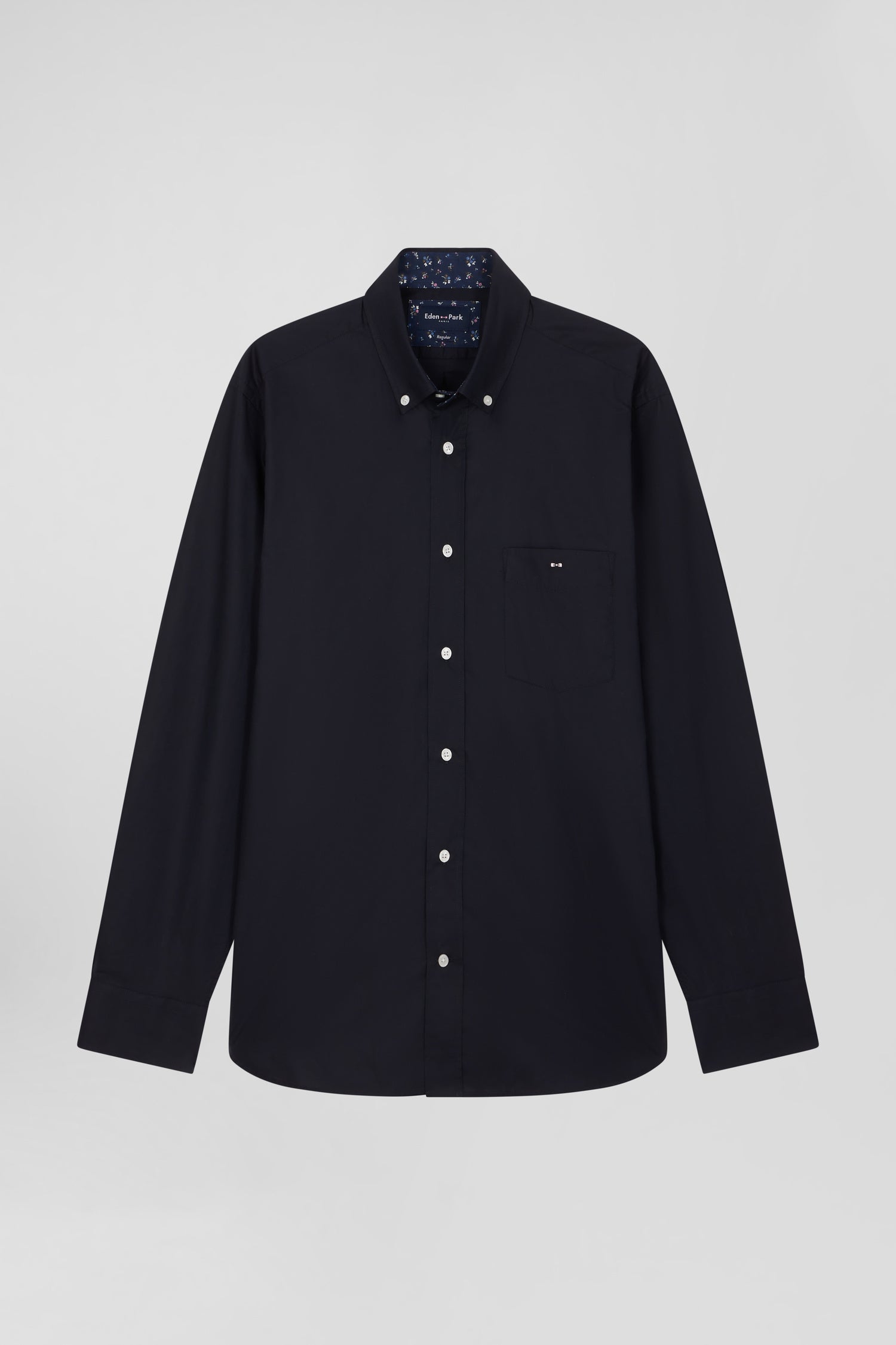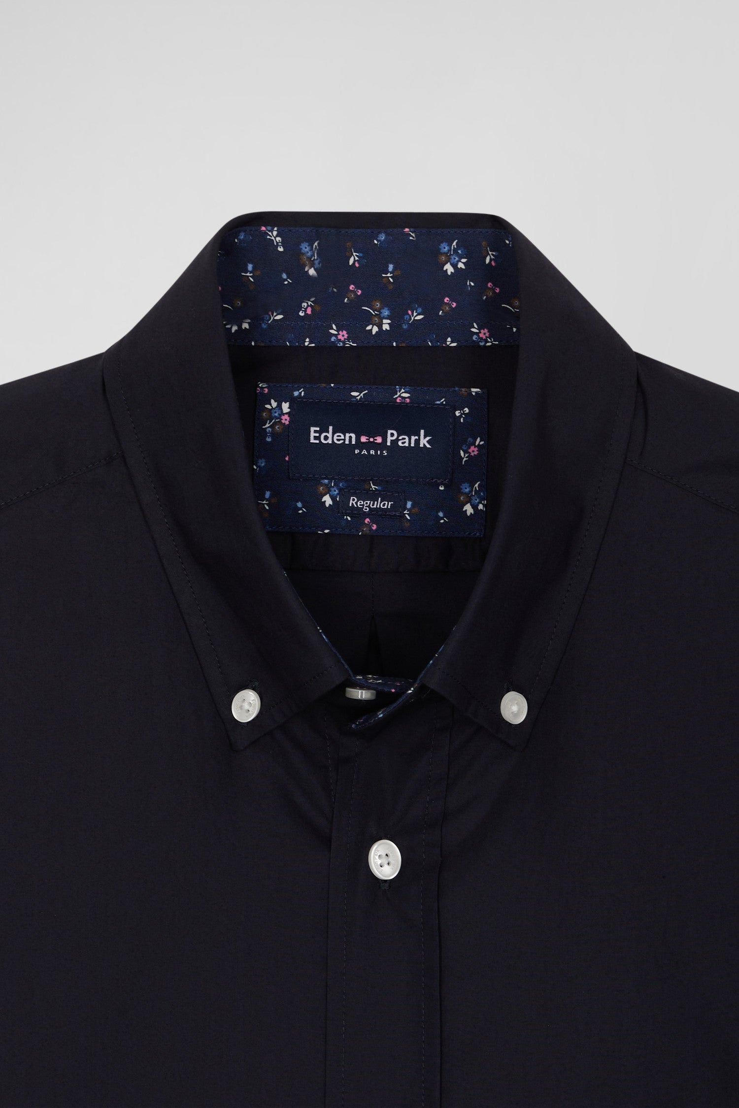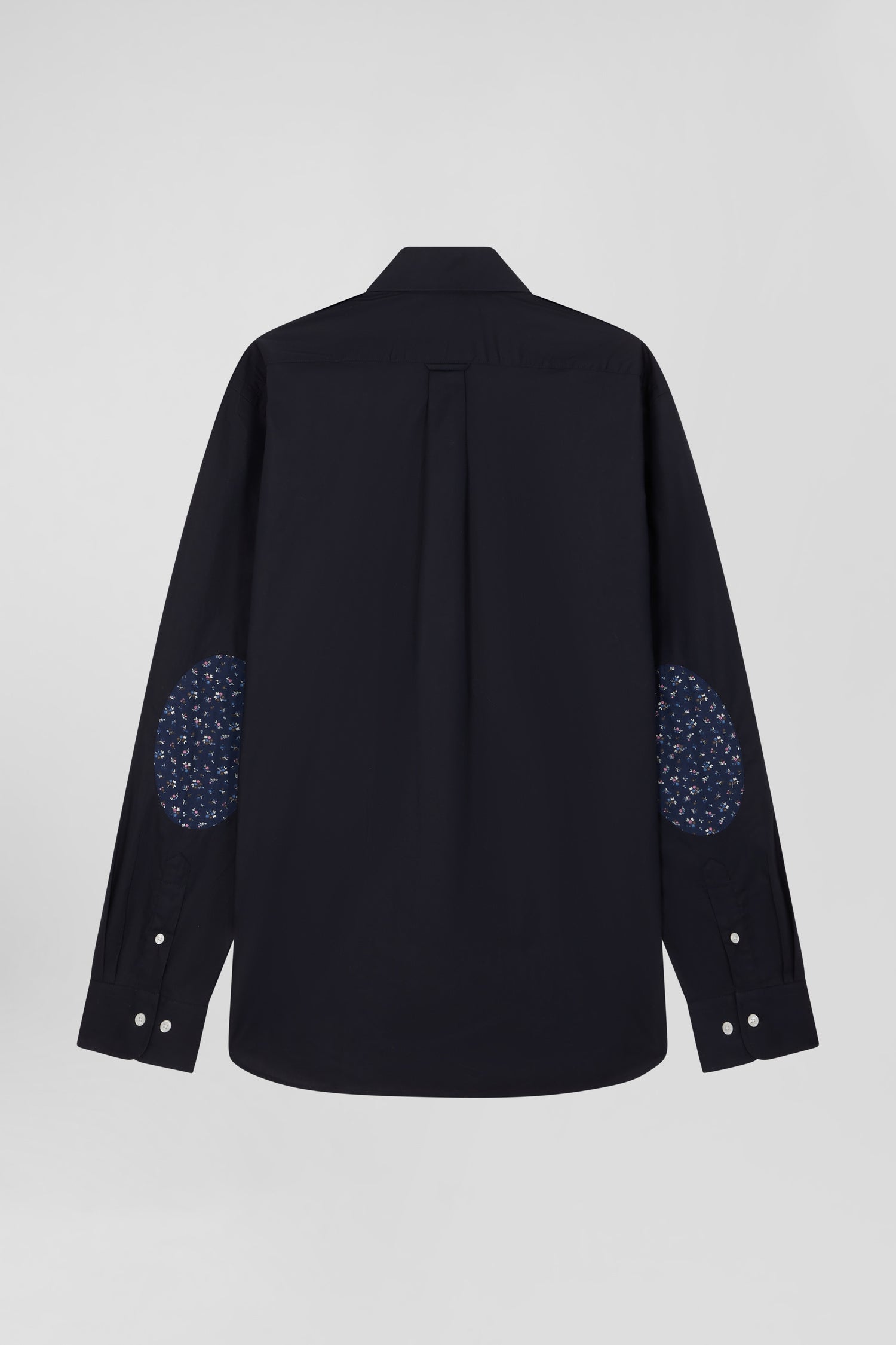 Chemise en popeline de coton bleu marine col boutonné et coudières imprimées coupe Regular