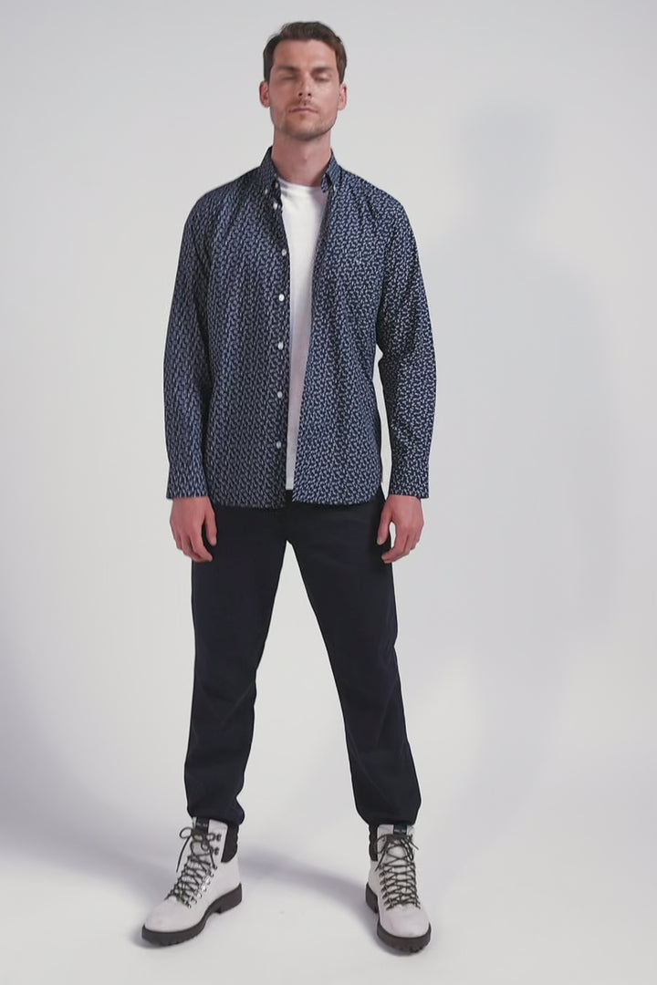 Chemise en popeline de coton bleu marine microimprimé nœud papillon coupe Regular