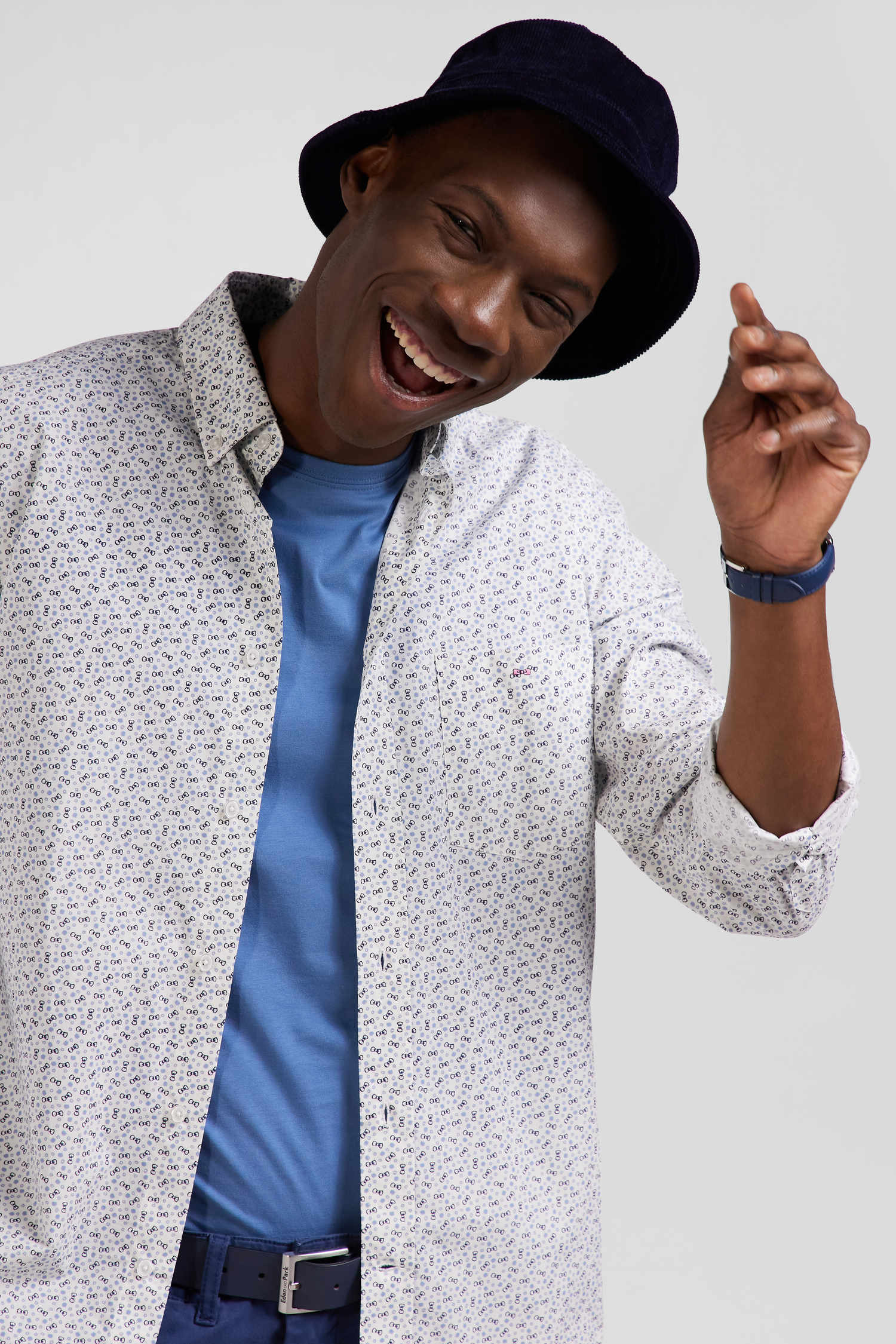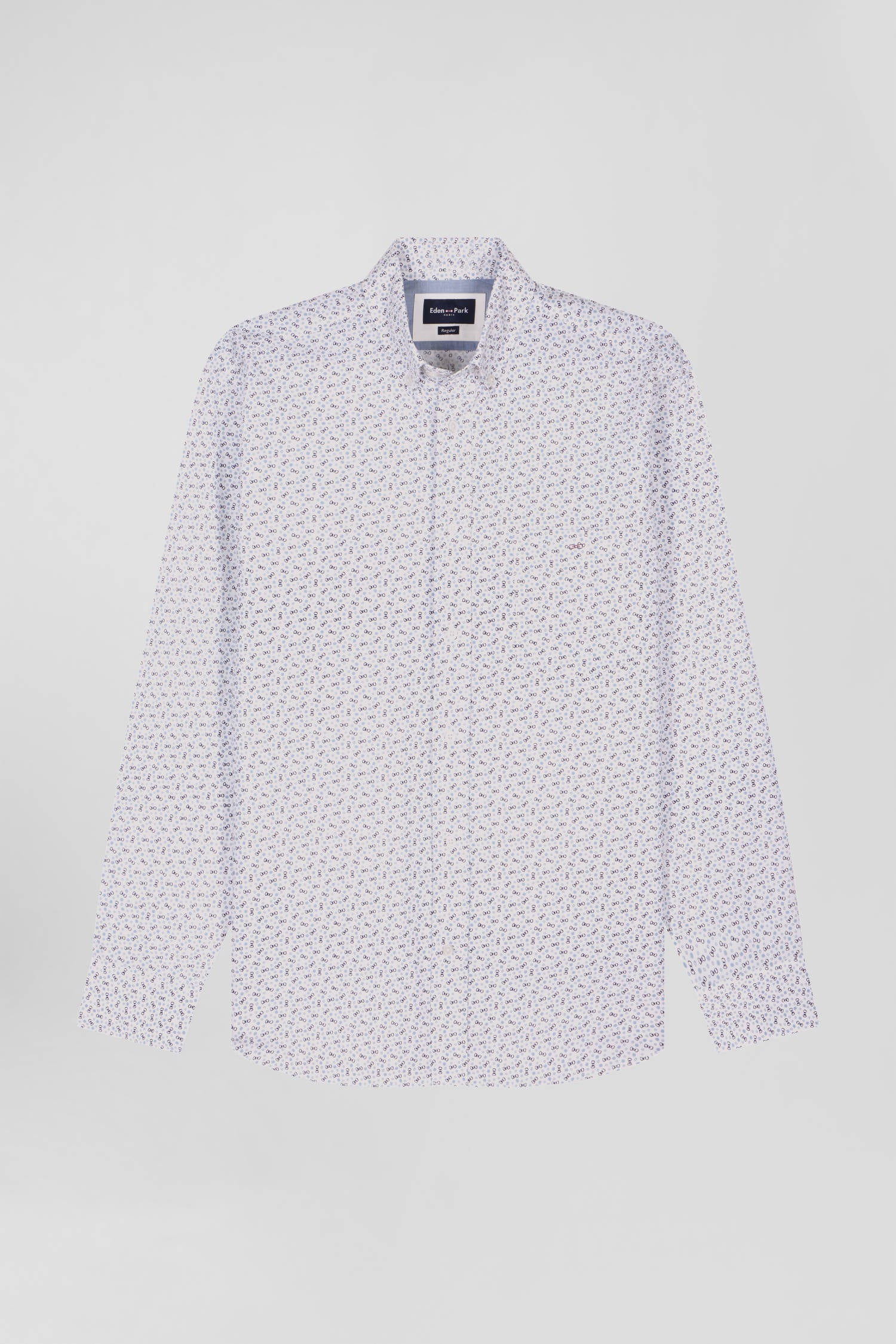 Chemise en popeline de coton écrue microimprimé nœud papillon coupe Regular