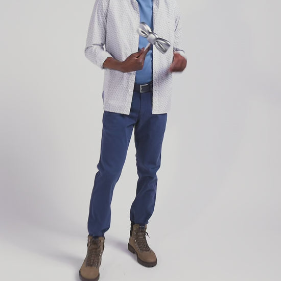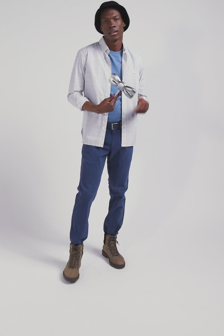 Pour une silhouette travaillée, nous vous proposons cette chemise en popeline de coton écrue ou marine, ornée d'un microimprimé nœud papillon intégrant subtilement l'emblème de notre Maison. Sa coupe Regular droite assure un ajustement confortable, tandis que la poche poitrine et le col boutonné ajoutent une touche de sophistication raffinée à cette chemise imprimée.
