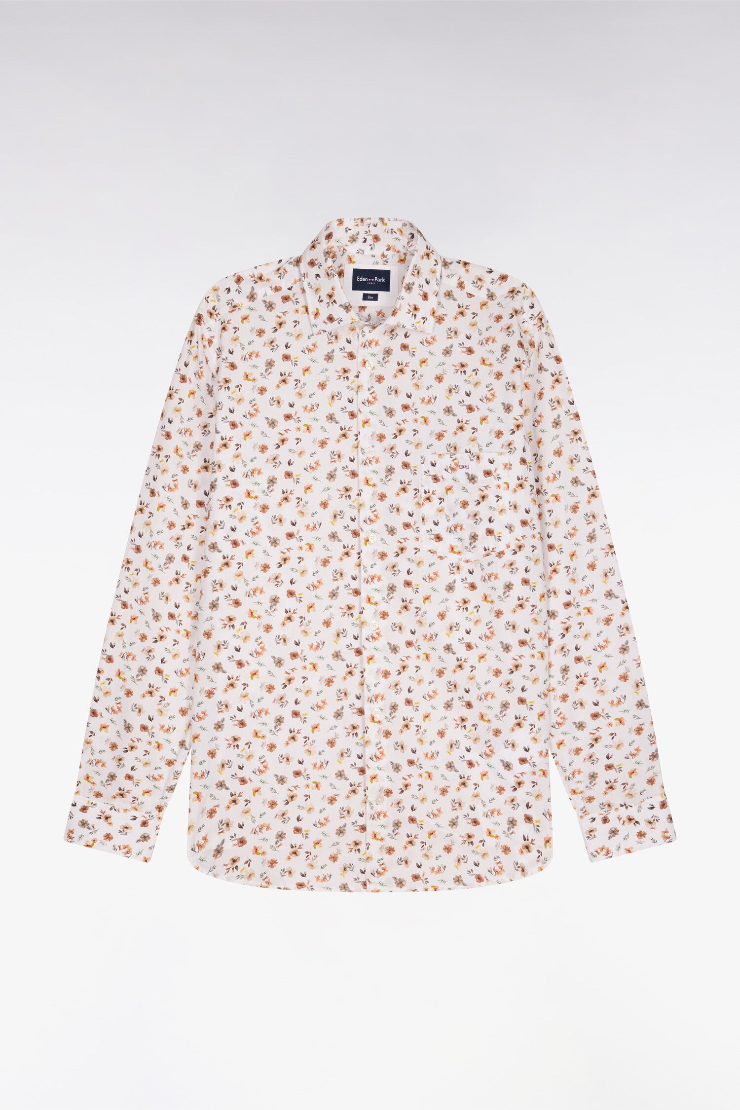 Chemise en popeline de coton imprimé floral orange coupe slim