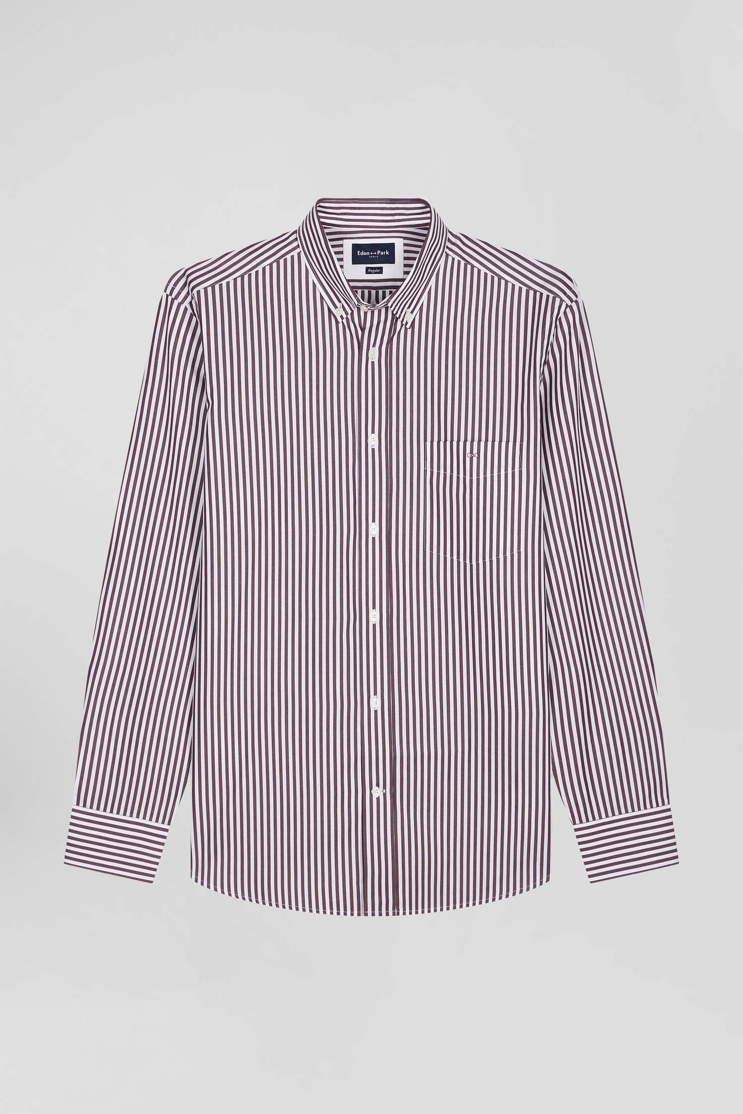 Chemise en popeline de coton rayée bordeaux coupe Regular