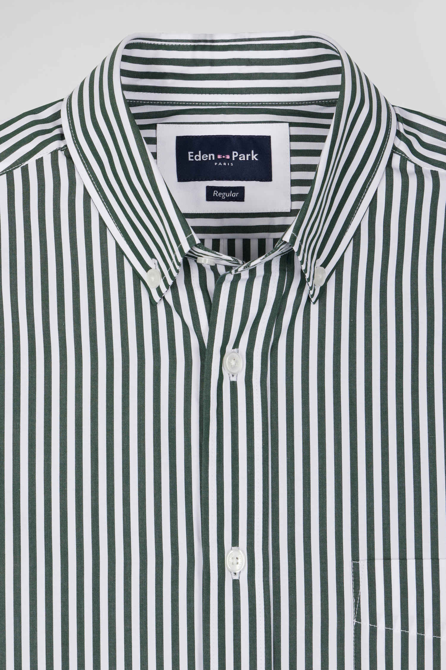 Chemise en popeline de coton rayée verte coupe Regular
