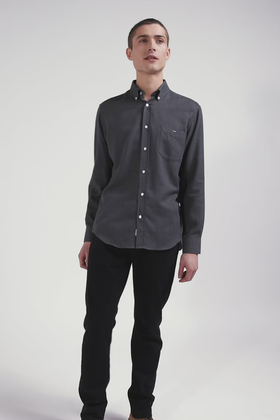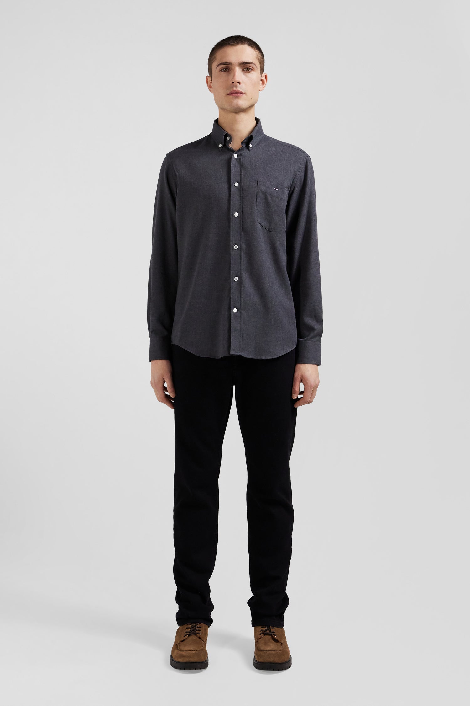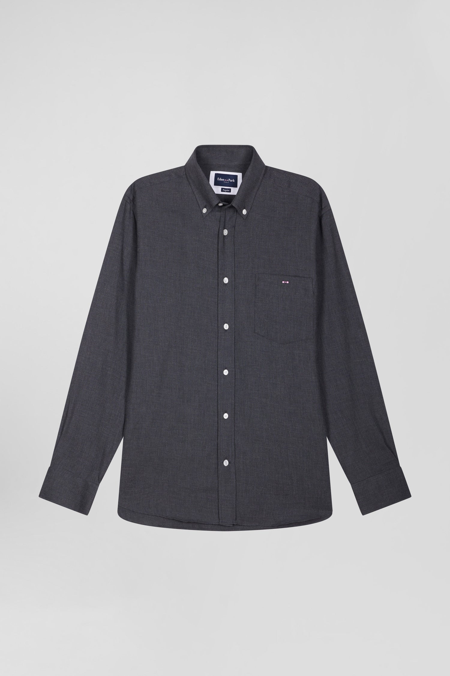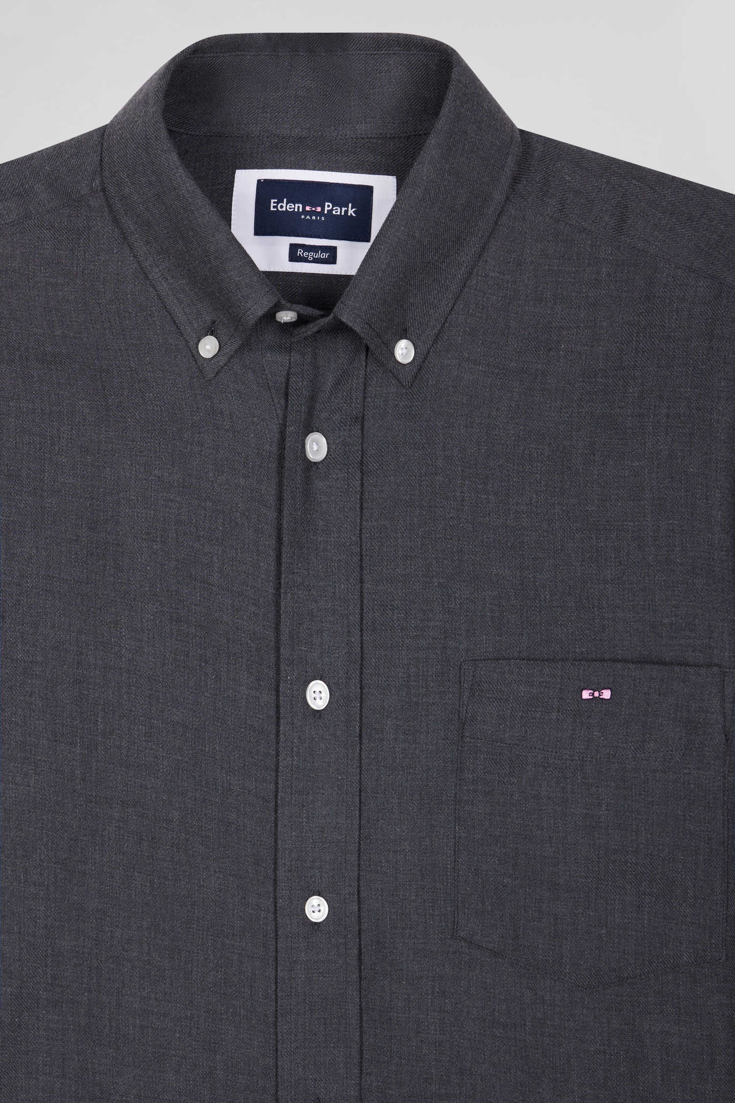 Chemise en twill de coton et cachemire gris anthracite coupe Regular