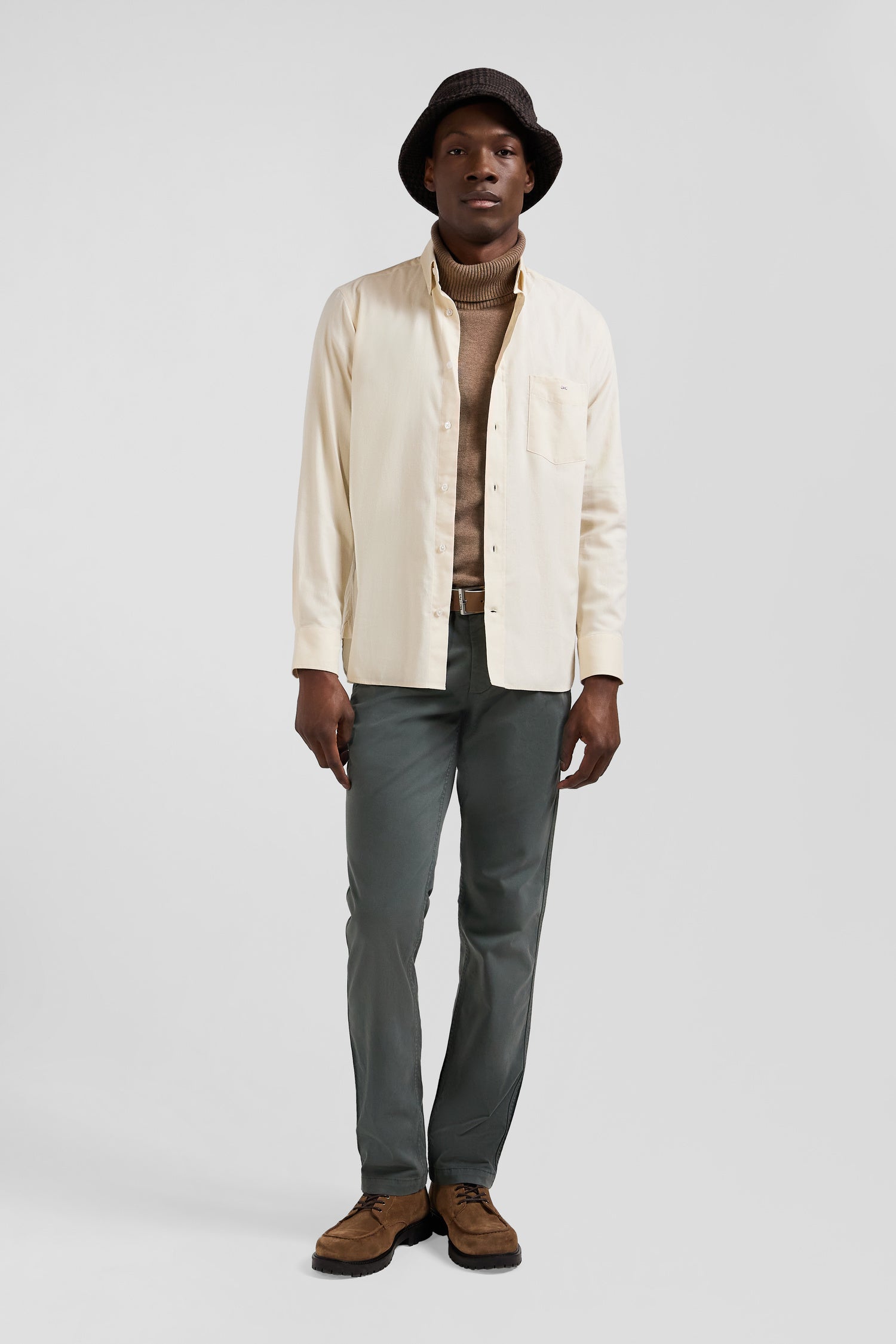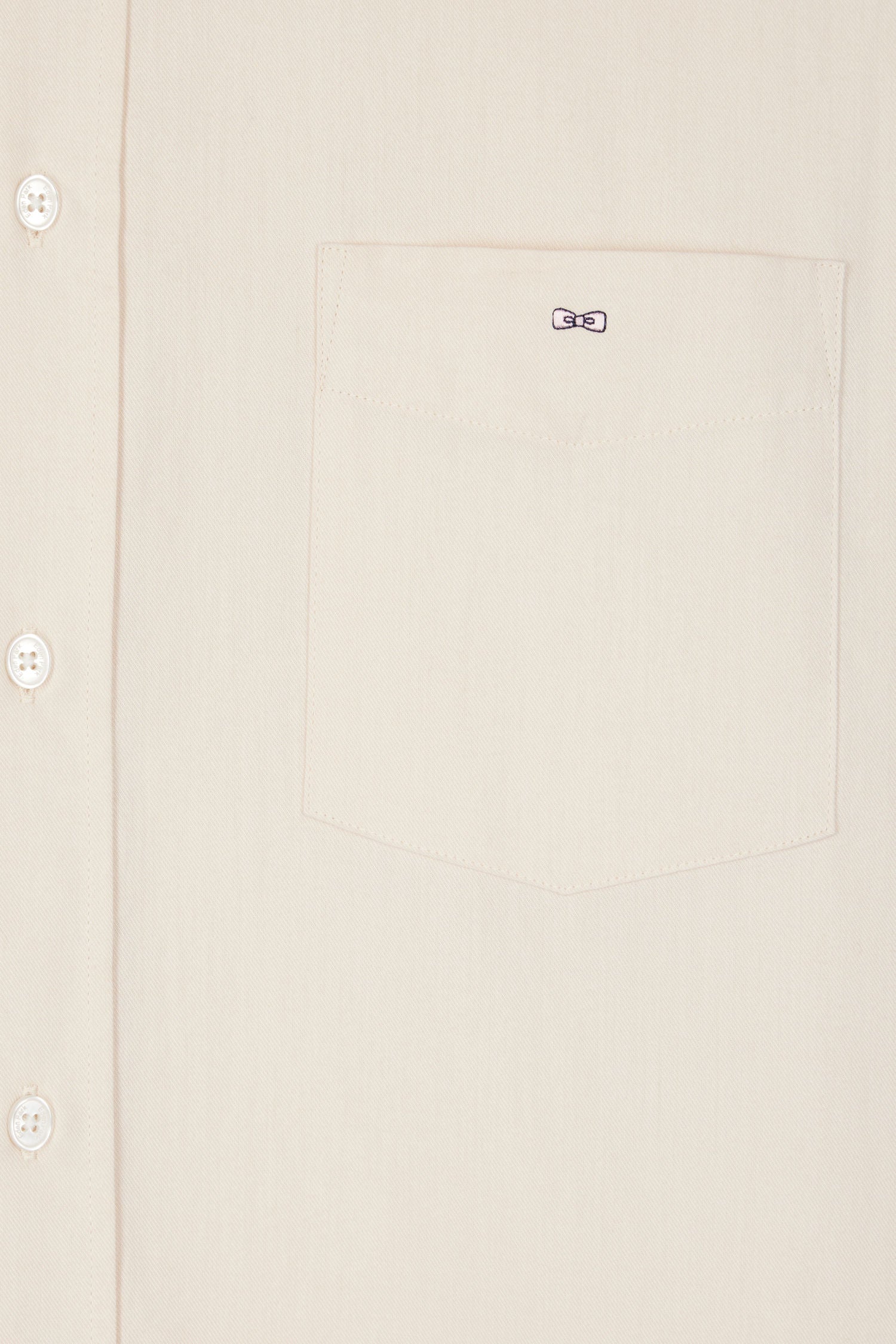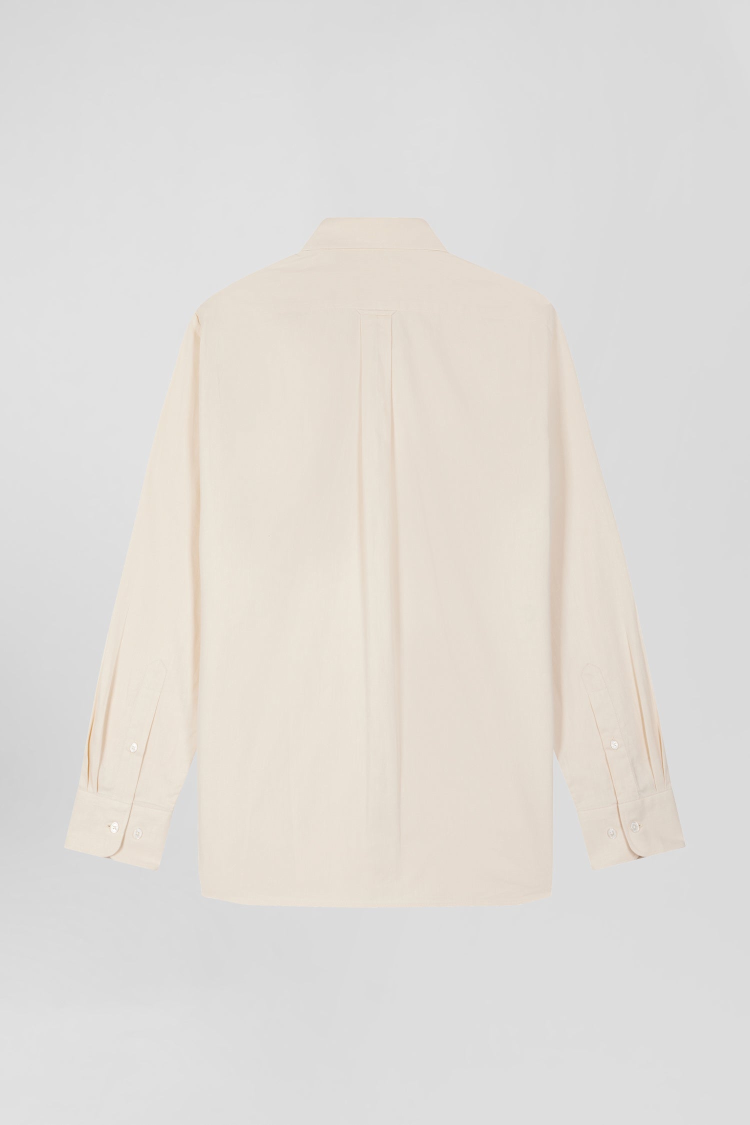 Chemise en twill de coton unie beige col à pointes boutonnées coupe Regular