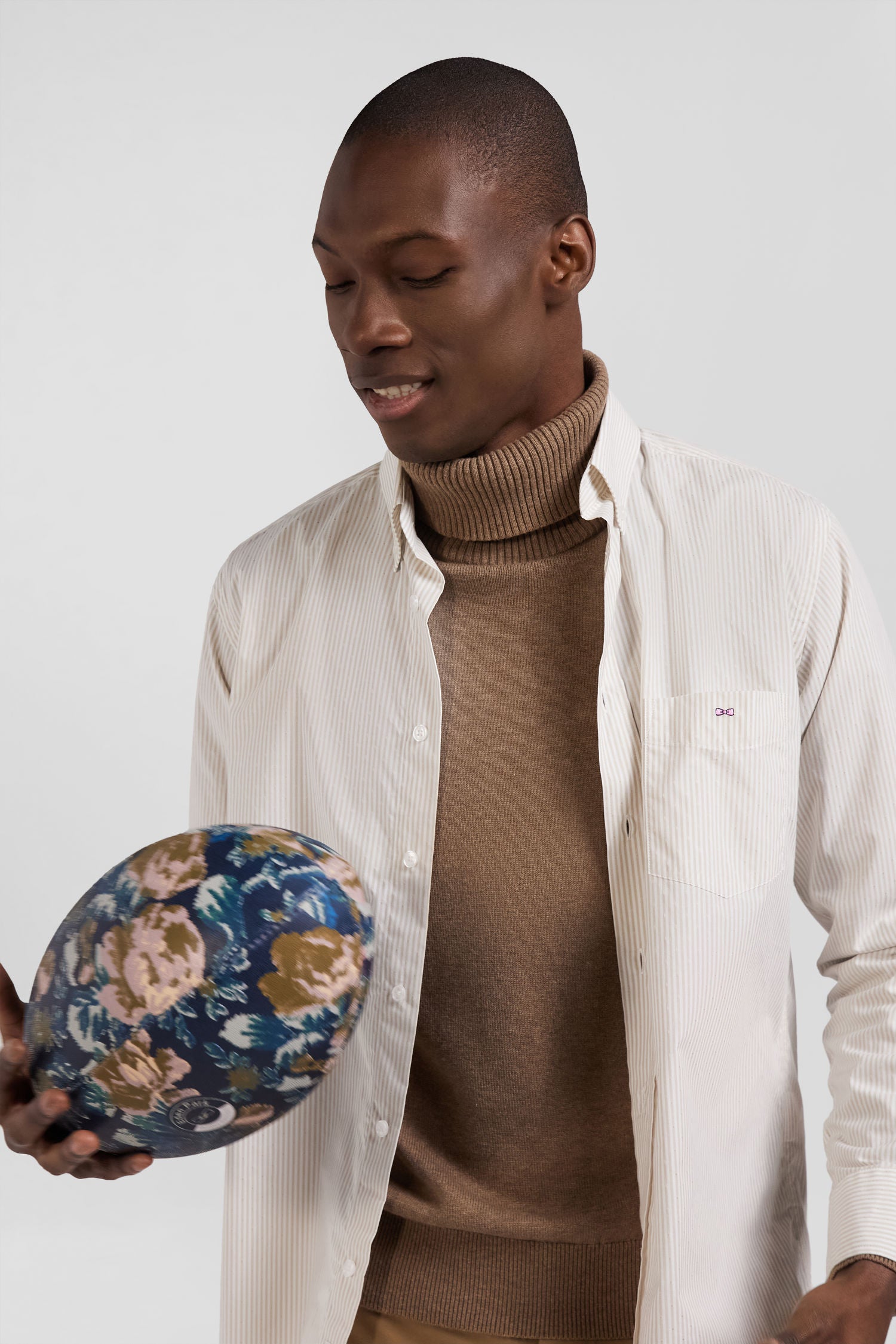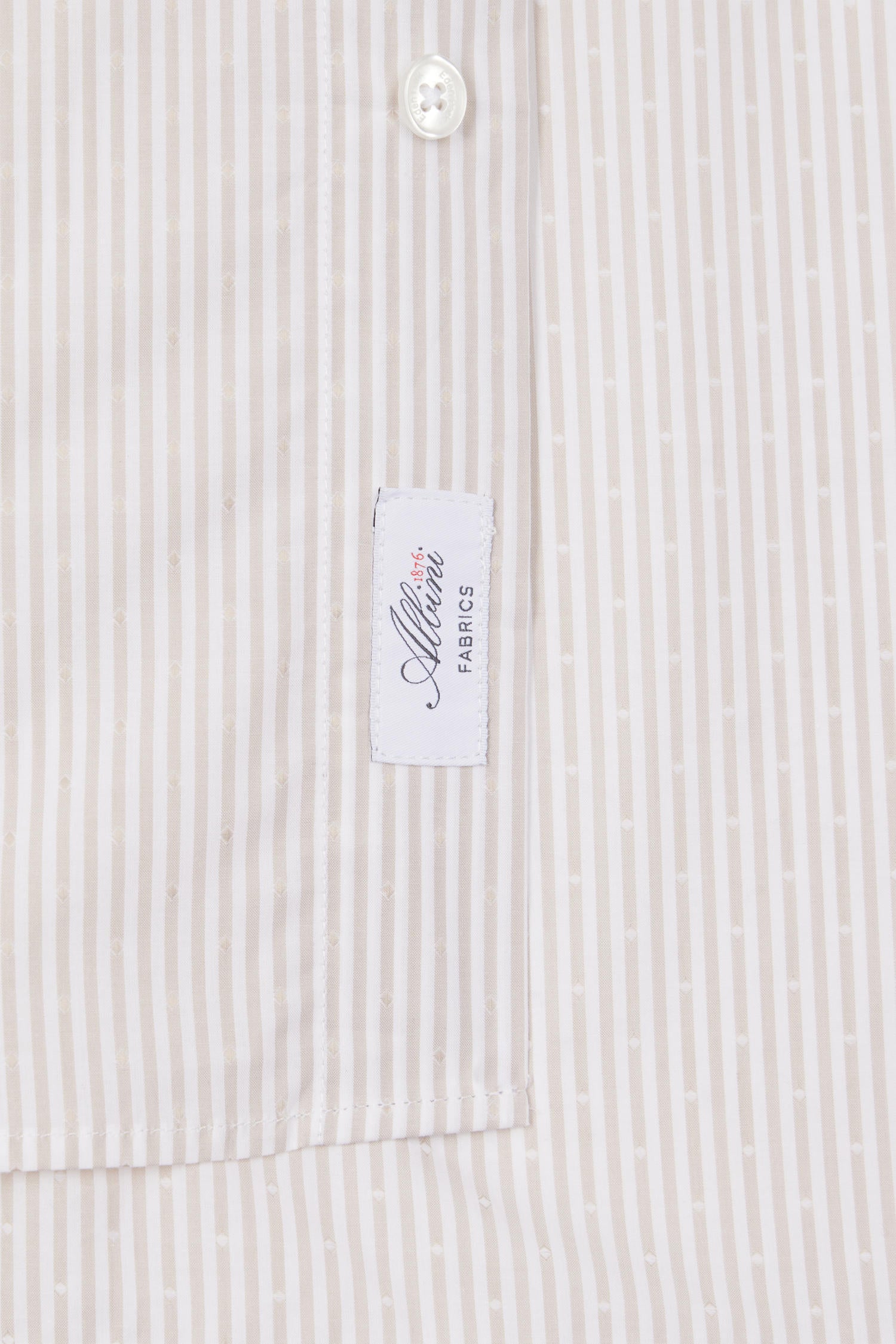 Pour une tenue du quotidien travaillée ou une occasion habillée, laissez-vous séduire par l'élégance raffinée de notre chemise rayée au motif jacquard de micro losanges. Cette pièce combine subtilement texture et motifs pour créer un effet visuel unique. Parfaite pour ajouter une dimension sophistiquée à votre tenue, cette chemise homme au tissage originaire d'Italie allie le charme intemporel des rayures à une touche graphique et originale.