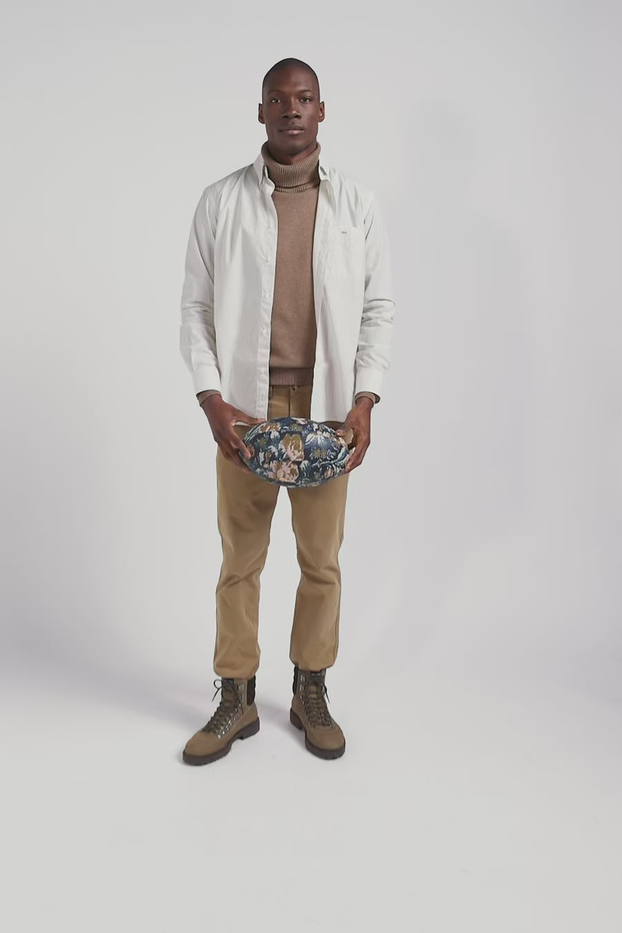 Pantalon chino marron en gabardine de coton stretch coupe Regular