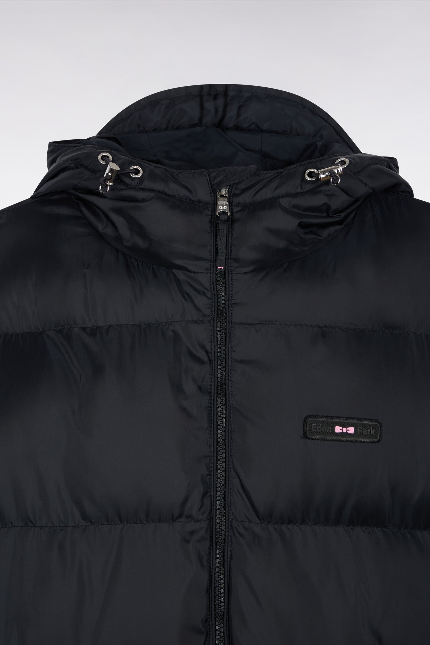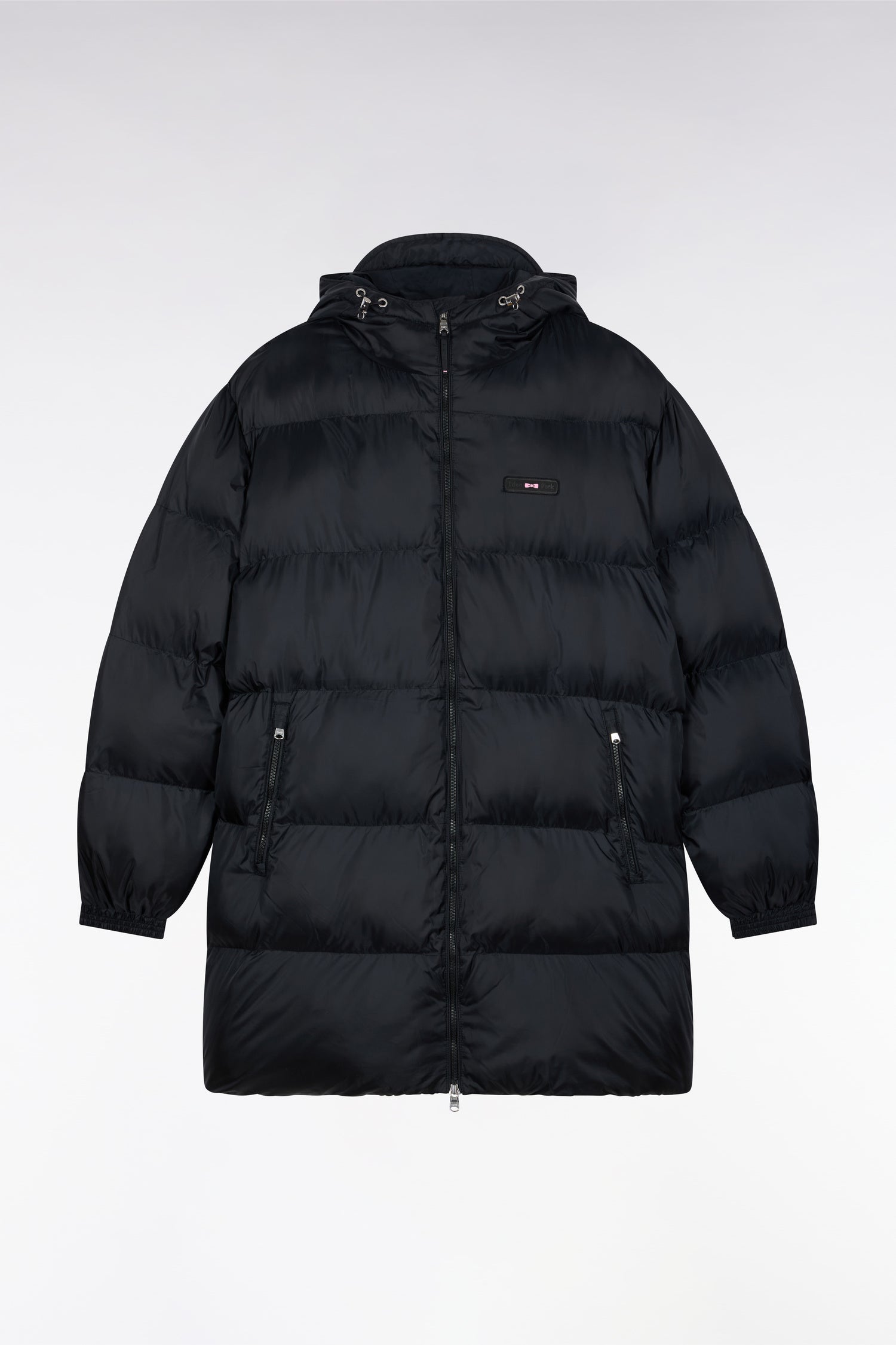 Pensée par notre studio de création pour affronter l’hiver avec style, cette doudoune longue à capuche intégrée séduit par son volume généreux et son matelassage large au fini subtilement brillant. Déclinée en noir ou en marine, cette doudoune homme allie protection et élégance avec ses zips en métal argenté, ses poignets élastiqués à patte pressionnée et ses finitions emblématiques : ruban tricolore sous l’encolure et barrette logo en gomme sur la poitrine