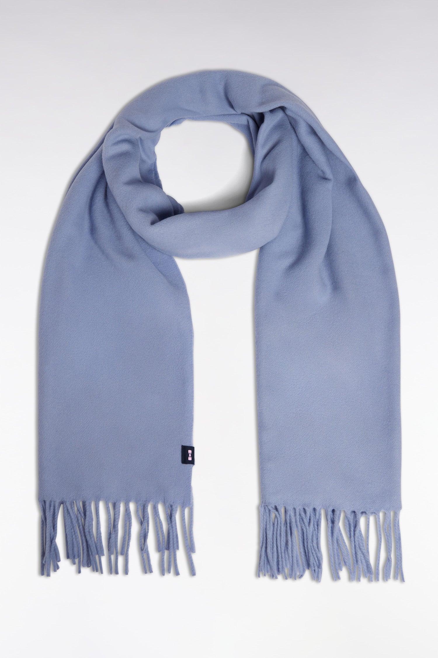 Écharpe frangée en laine vierge ciel