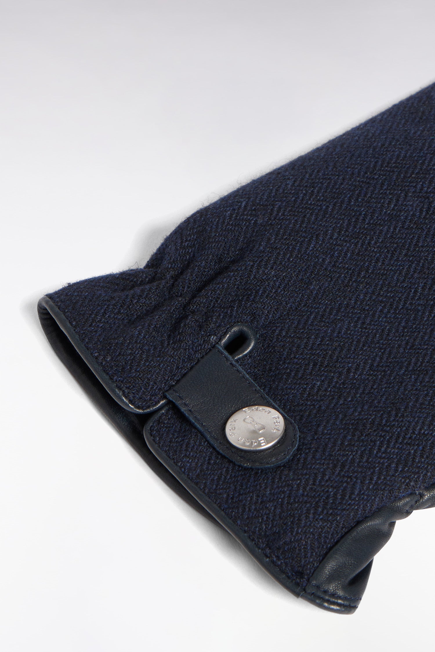 Ces gants pour homme mêlent élégance rétro et raffinement contemporain avec brio. Leur dos en tissu chevrons s’accorde à une paume en cuir lisse et à une patte boutonnée siglée, pour une allure distinguée jusque dans les moindres détails. Un accessoire intemporel décliné en gris ou en bleu