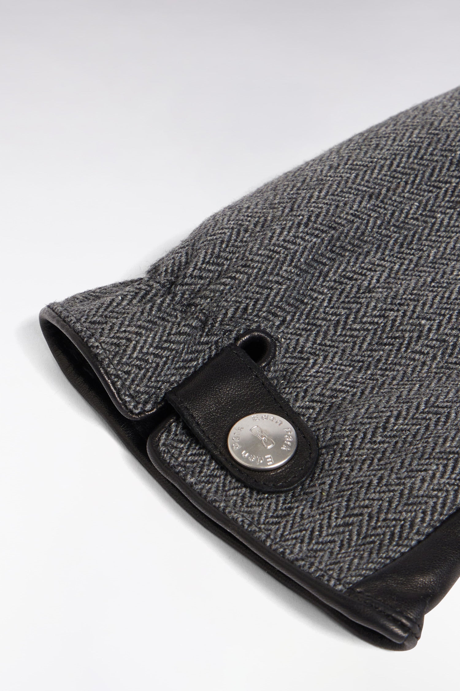Ces gants pour homme mêlent élégance rétro et raffinement contemporain avec brio. Leur dos en tissu chevrons s’accorde à une paume en cuir lisse et à une patte boutonnée siglée, pour une allure distinguée jusque dans les moindres détails. Un accessoire intemporel décliné en gris ou en bleu