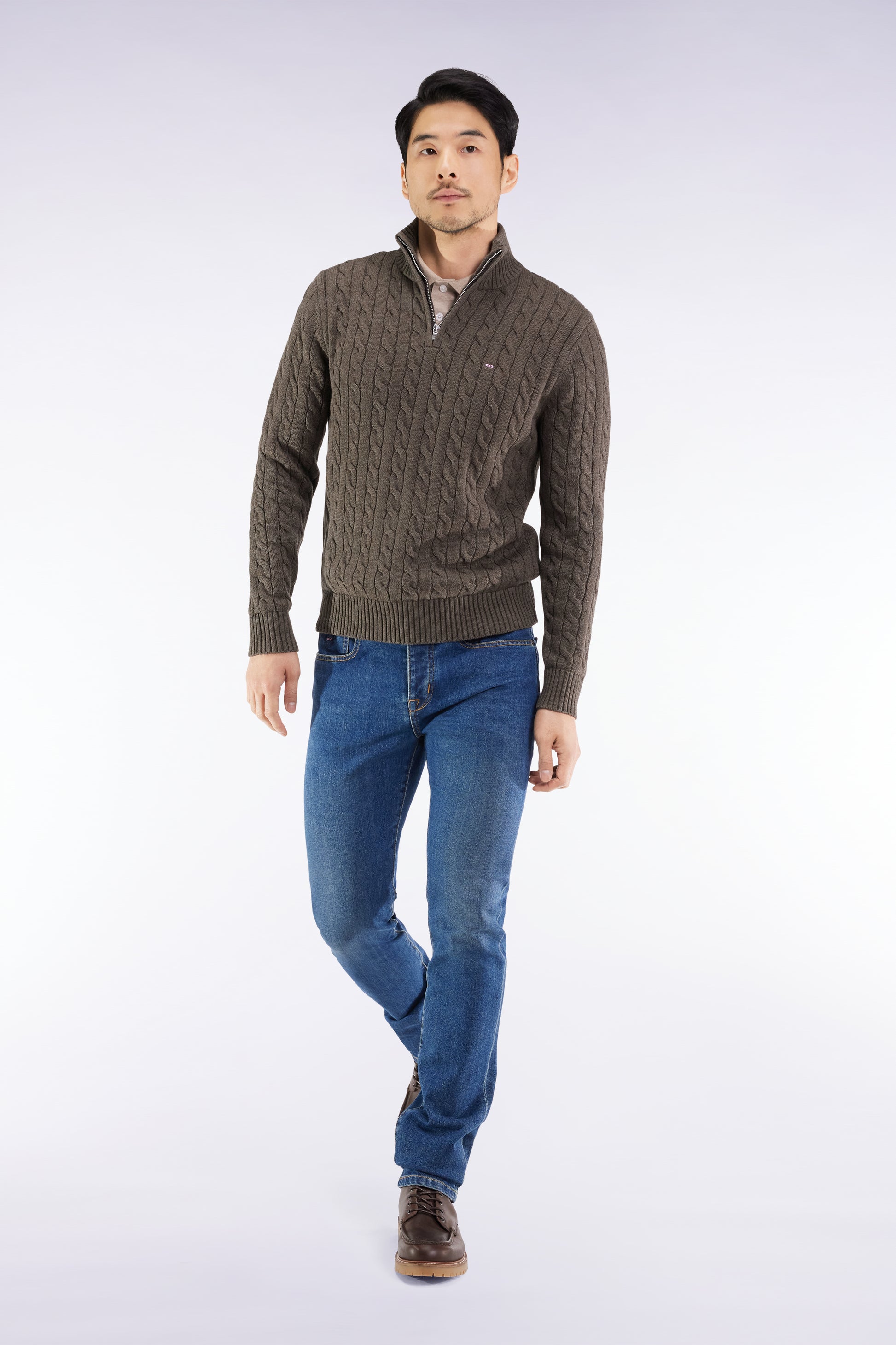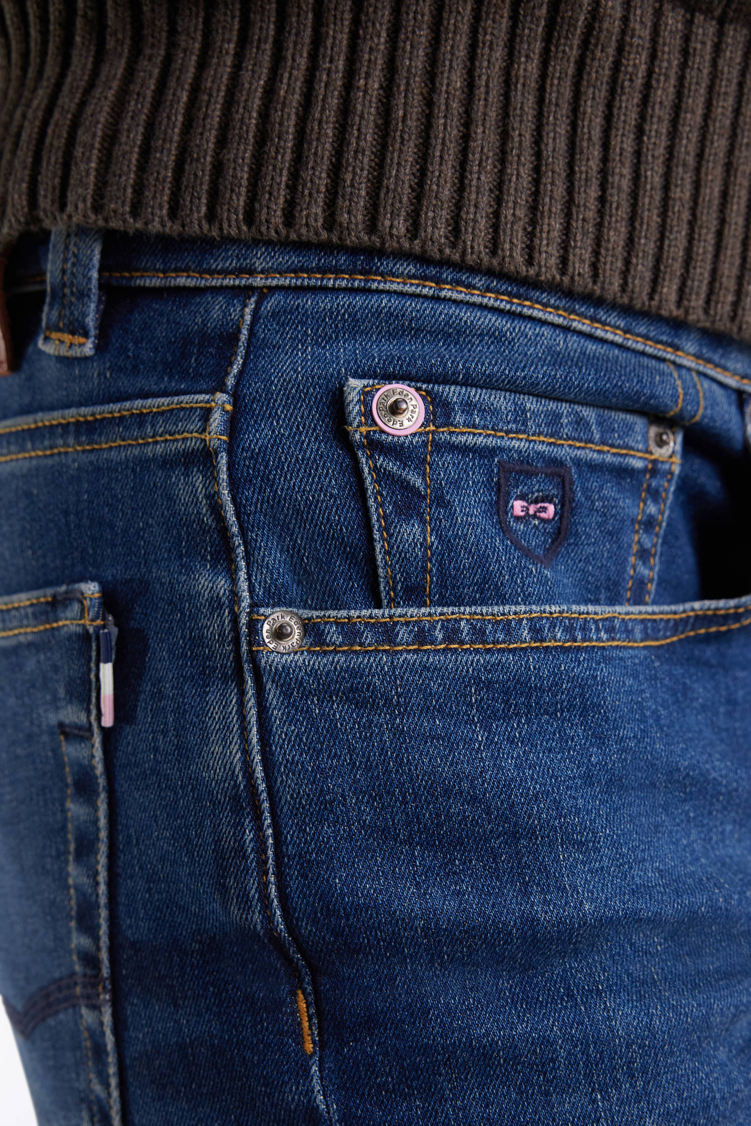 Jean 5 poches en denim stretch de coton Pima bleu coupe Slim