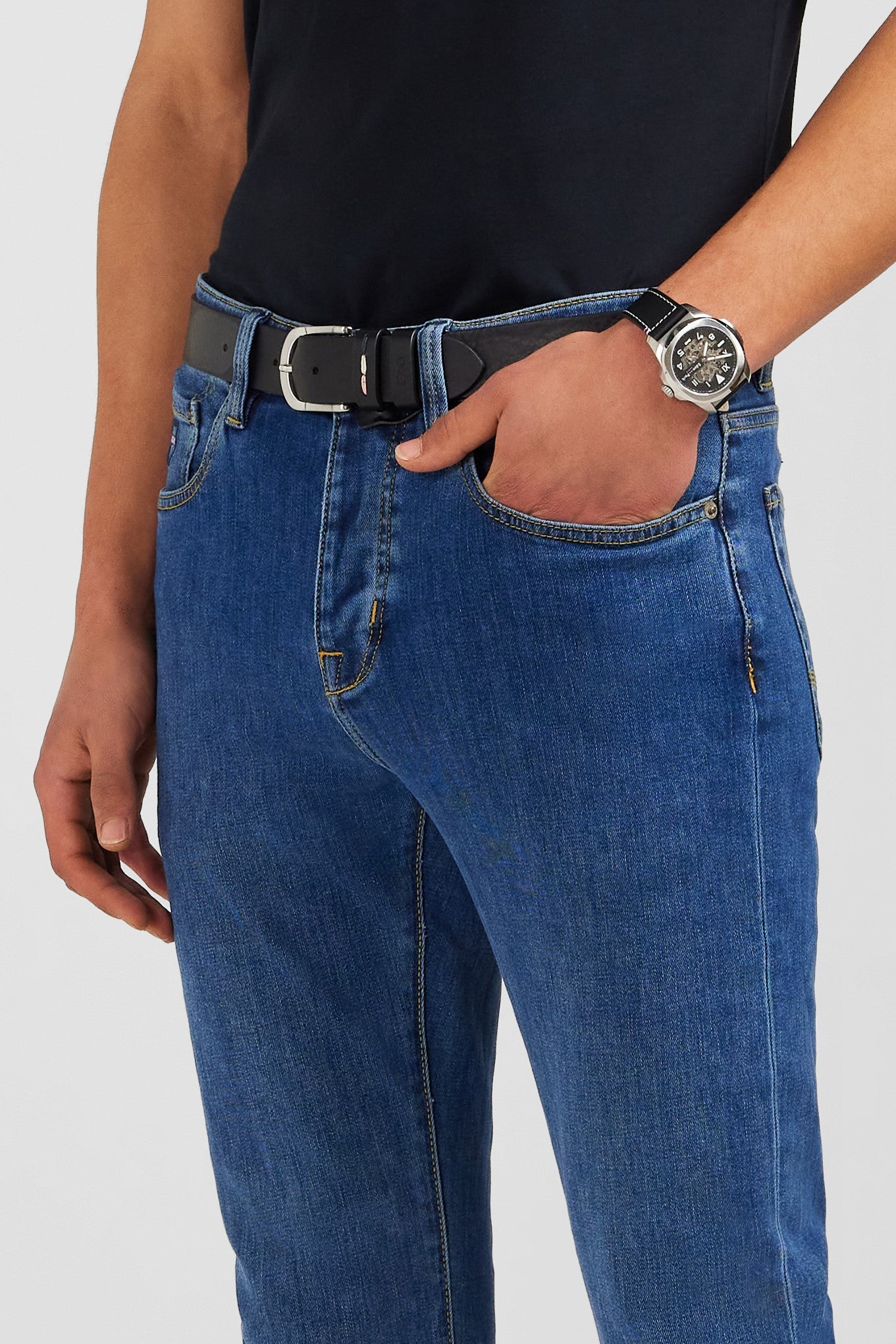 Ce jean en coton stretch possède 2 poches cavalières avant, une poche ticket avant, 2 poches plaquées arrière, une fermeture boutonnée et un jacron siglé Eden Park à l'arrière