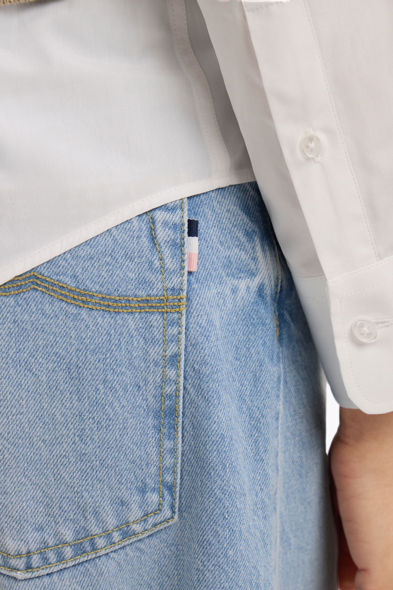 Ce jean en denim bleach clair adopte un style décontracté avec sa coupe droite et large et sa taille basse. Le denim gratté au niveau des poches apporte un charme vintage subtilement travaillé à ce modèle féminin. Les finitions signature, sac de poches rayé, ruban ottoman tricolore, jacron en cuir siglé et bouton personnalisé, soulignent son caractère unique. Un jean à la fois cool et féminin, idéal pour les journées de la saison printemps-été. Associez au vôtre une paire de baskets basses.