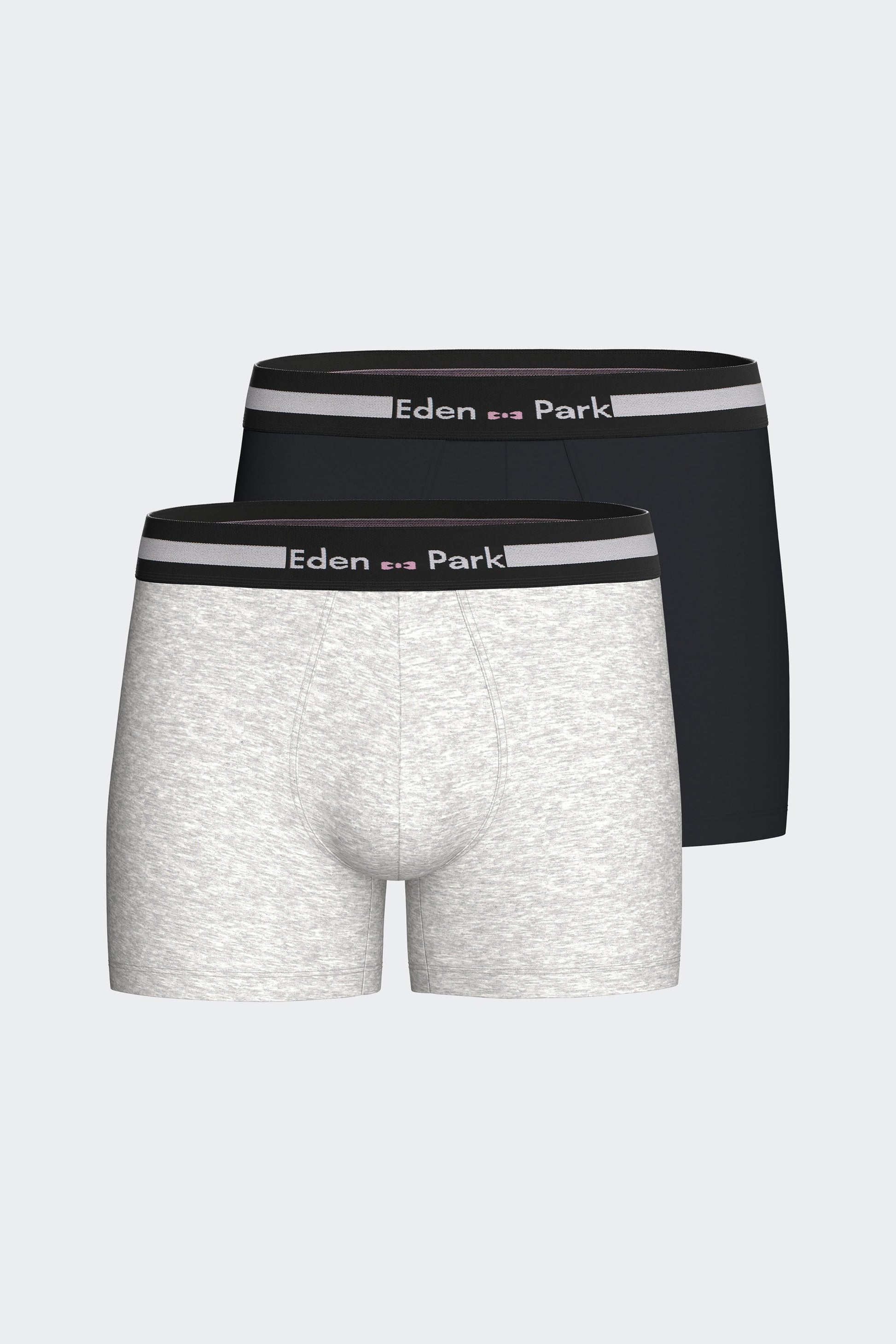 Ce pack de deux boxers masculins est confectionné en coton stretch avec un élastique de taille siglé Eden Park à détail contrasté. Nos sous-vêtements allient confort, maintien optimal et style intemporel pour vous accompagner au quotidien. Blanc, marine, bleu, ciel, gris ou rose : vous avez l'embarras du choix pour compléter votre collection de sous-vêtements.