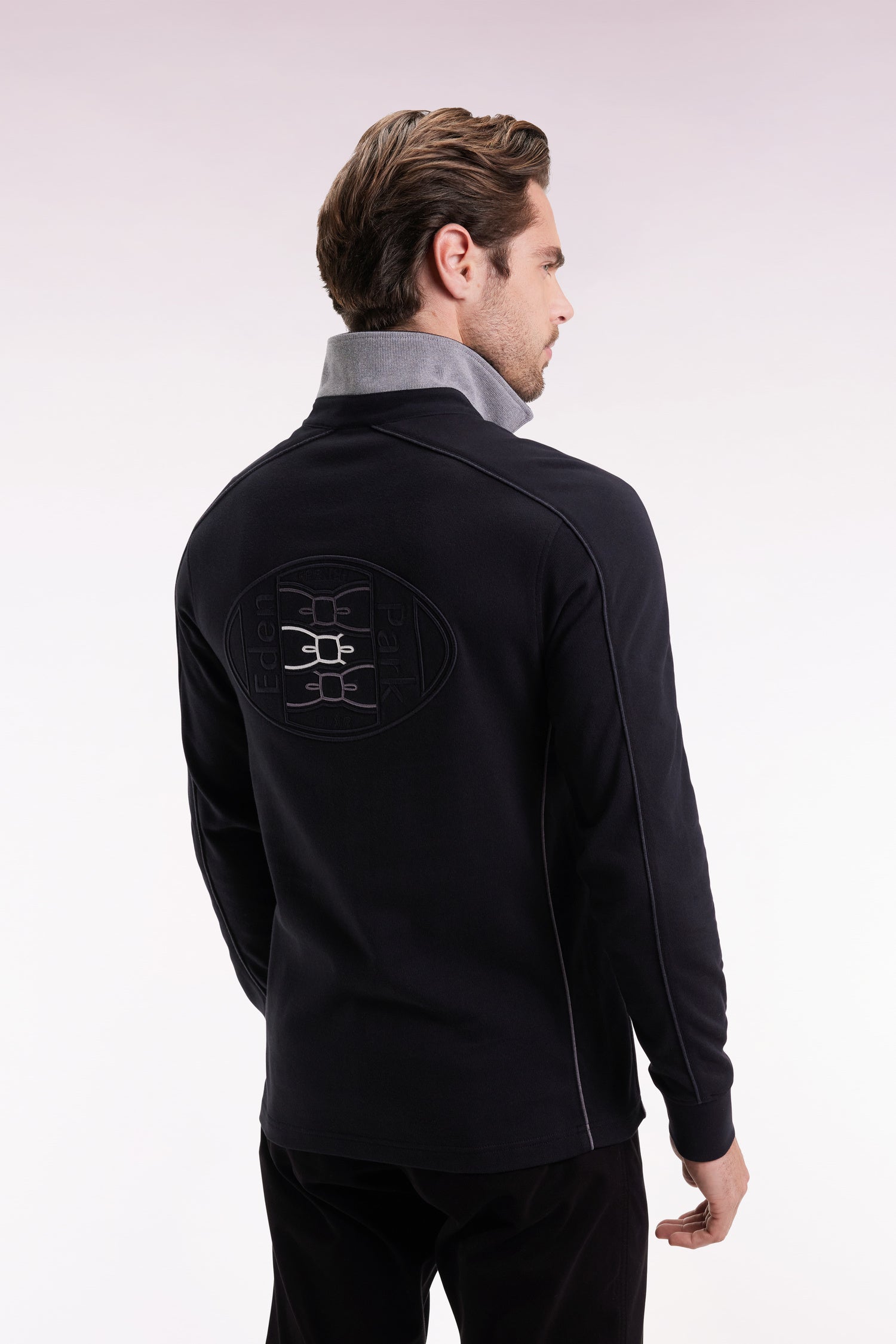 Maillot à manches longues en jersey de coton épais noir passepoils coupe droite