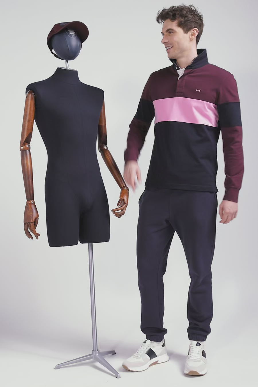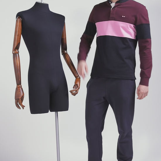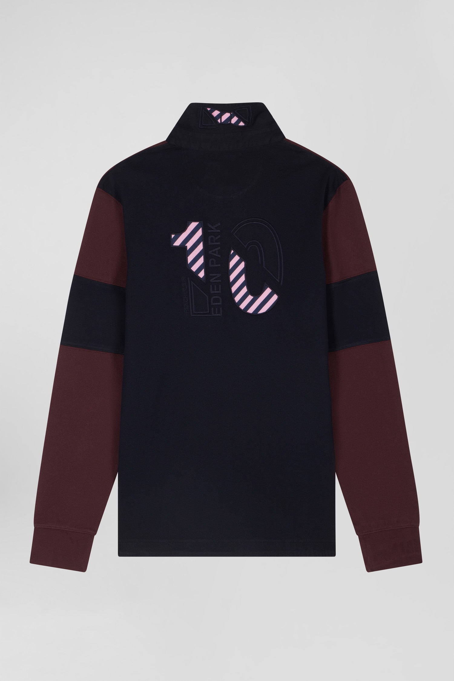 Maillot manches longues colorblock bordeaux en coton broderie dos coupe Regular