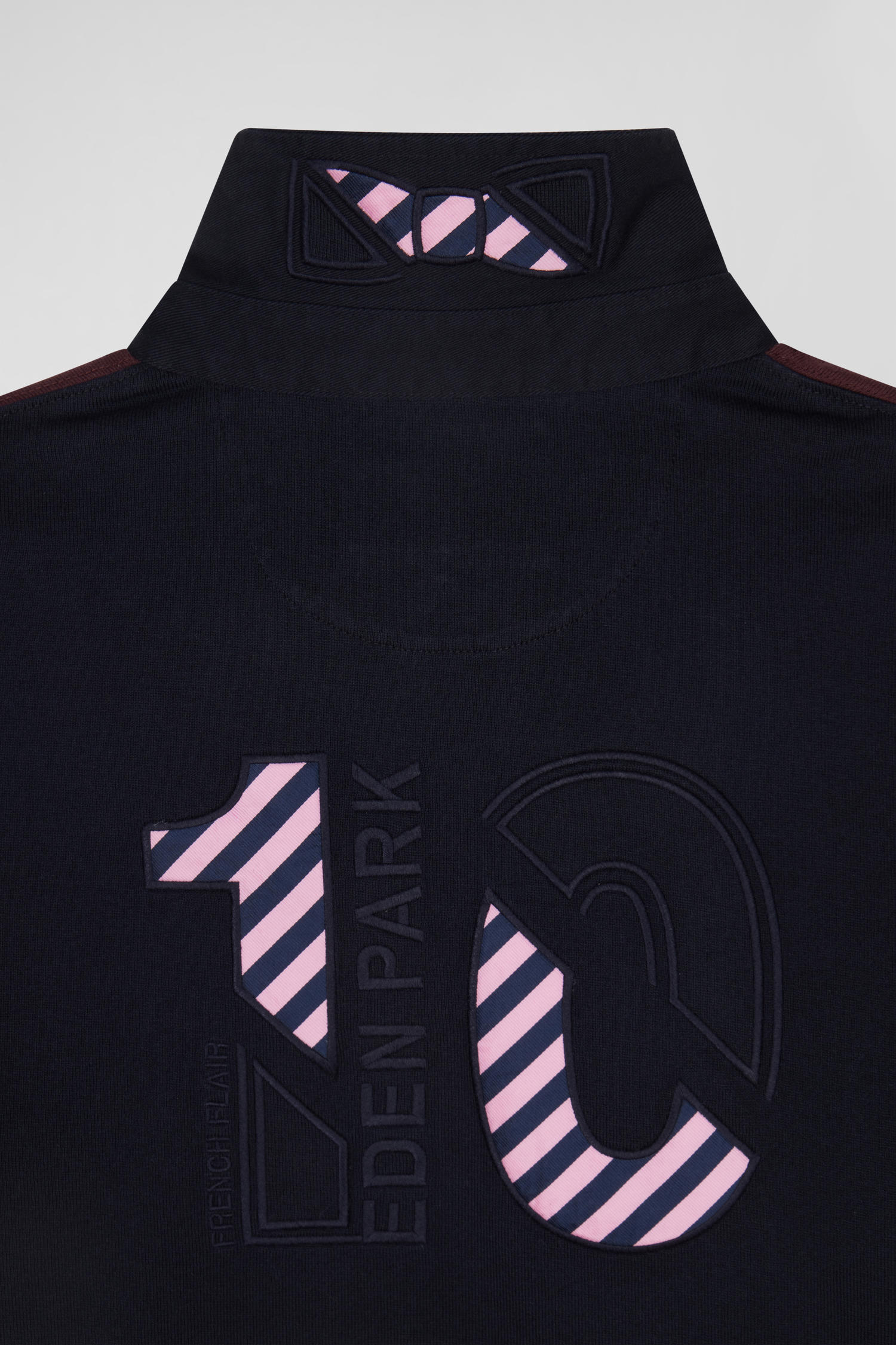 Affirmez votre style avec ce maillot homme à manches longues Eden Park. L'élégance sportive se réinvente dans un colorblock hommage aux couleurs iconiques de notre Maison. La broderie audacieuse du numéro 10 dans le dos, soulignée de tissus cravate cerclés, célèbre l'héritage rugby avec panache. Le col classique, la patte de boutonnage contrastée et l'emblématique nœud papillon brodé apportent à cette pièce de caractère une finition distinguée.