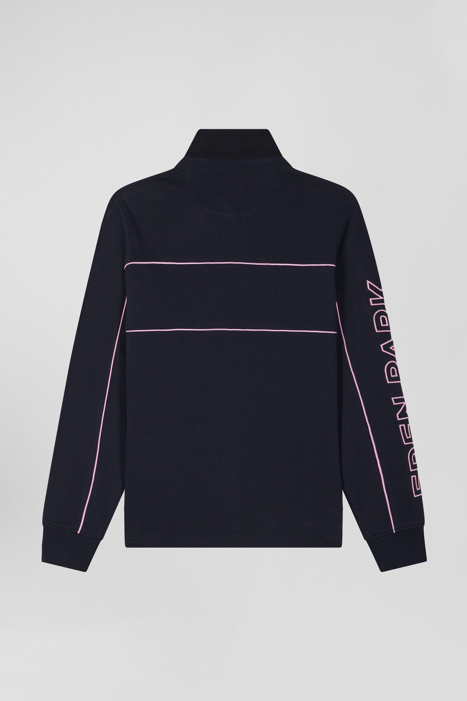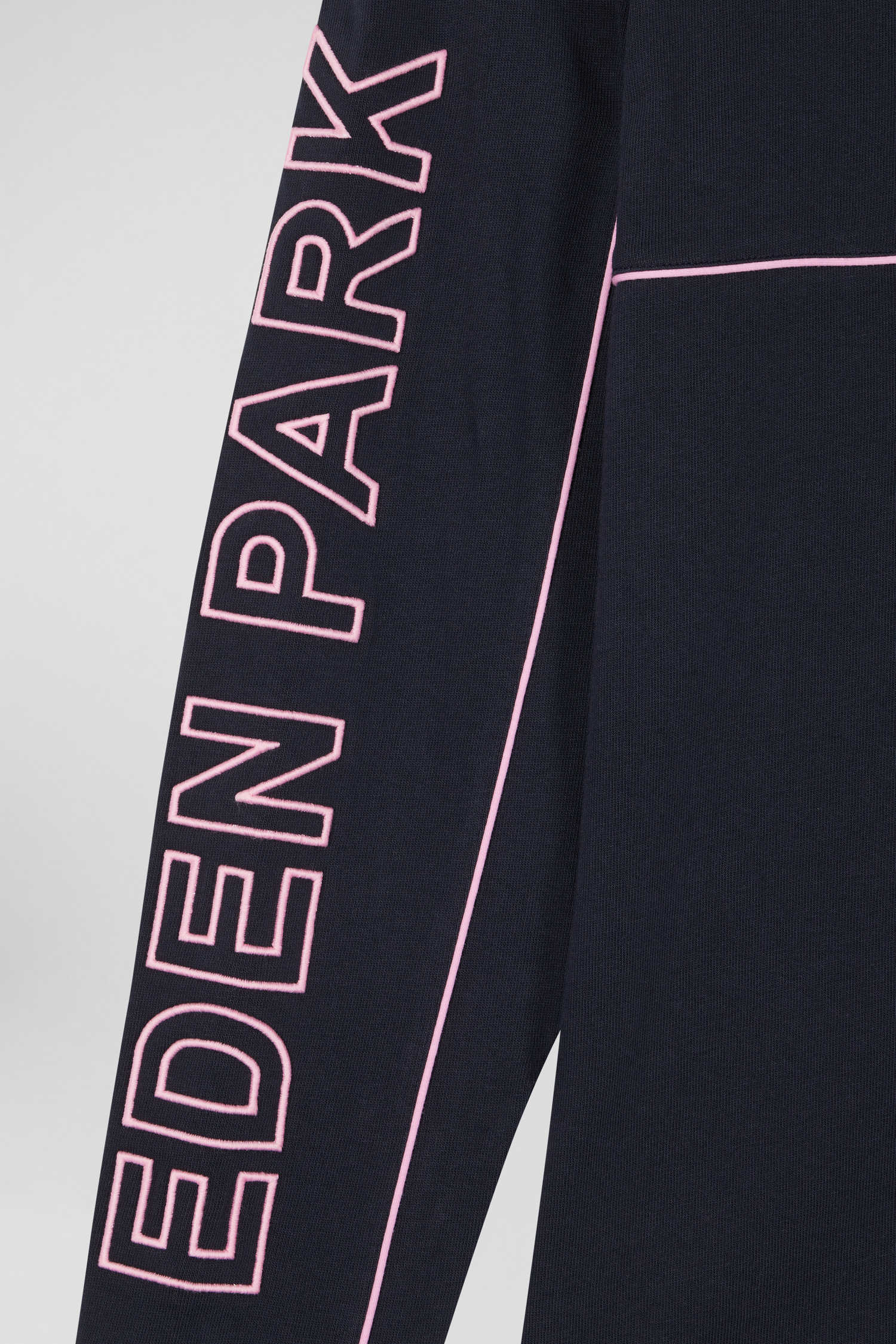 Maillot manches longues en coton bleu marine passepoil rose broderie Eden Park coupe Regular