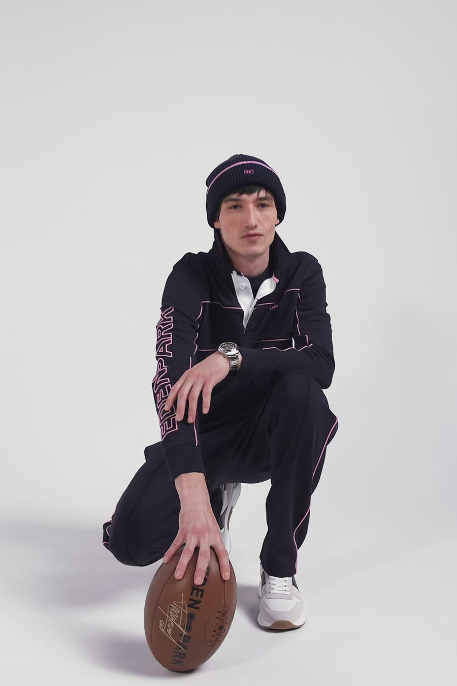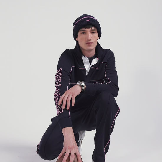 Ce maillot à manches longues en jersey de coton marine est rehaussé d'un passepoil rose le long des découpes pour une touche de contraste subtil. La broderie en volume EDEN PARK sur la manche ajoute une signature distincte, tandis que son dessous de col en bords-côtes et son col en twill de coton lui confèrent une finition soignée. Avec sa coupe droite, ce maillot homme bleu marine et rose allie style sportif et élégance décontractée.
