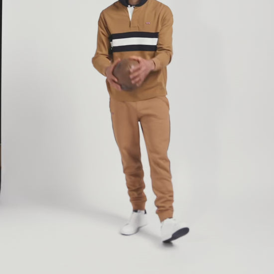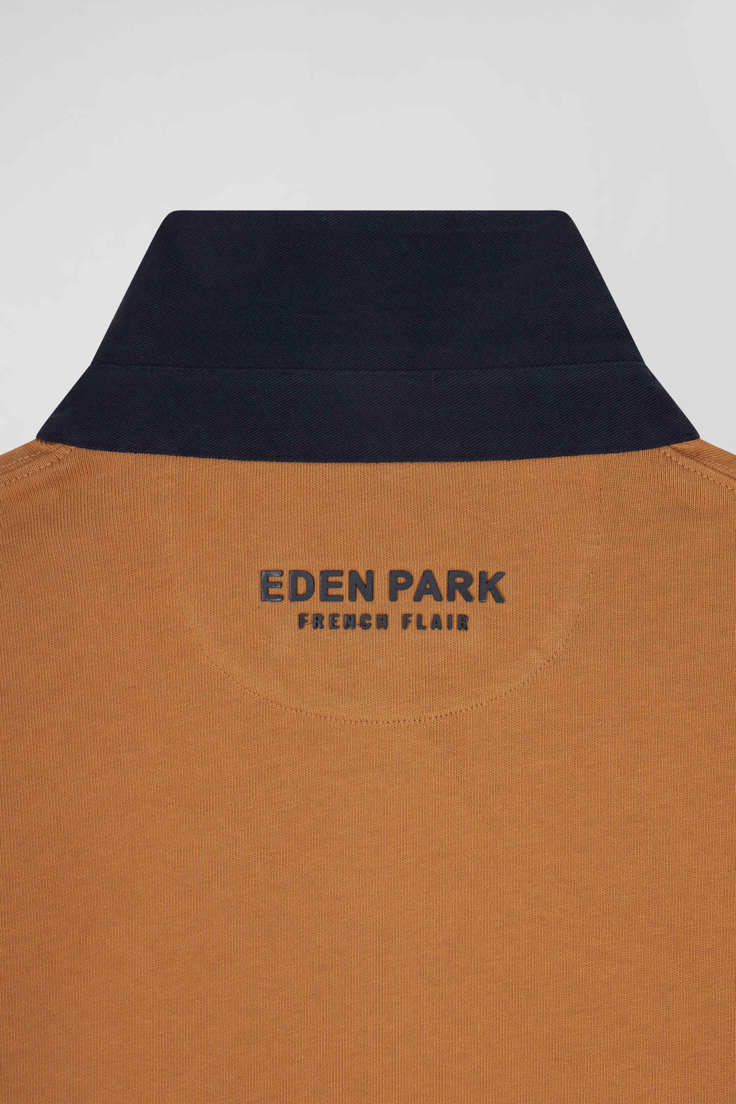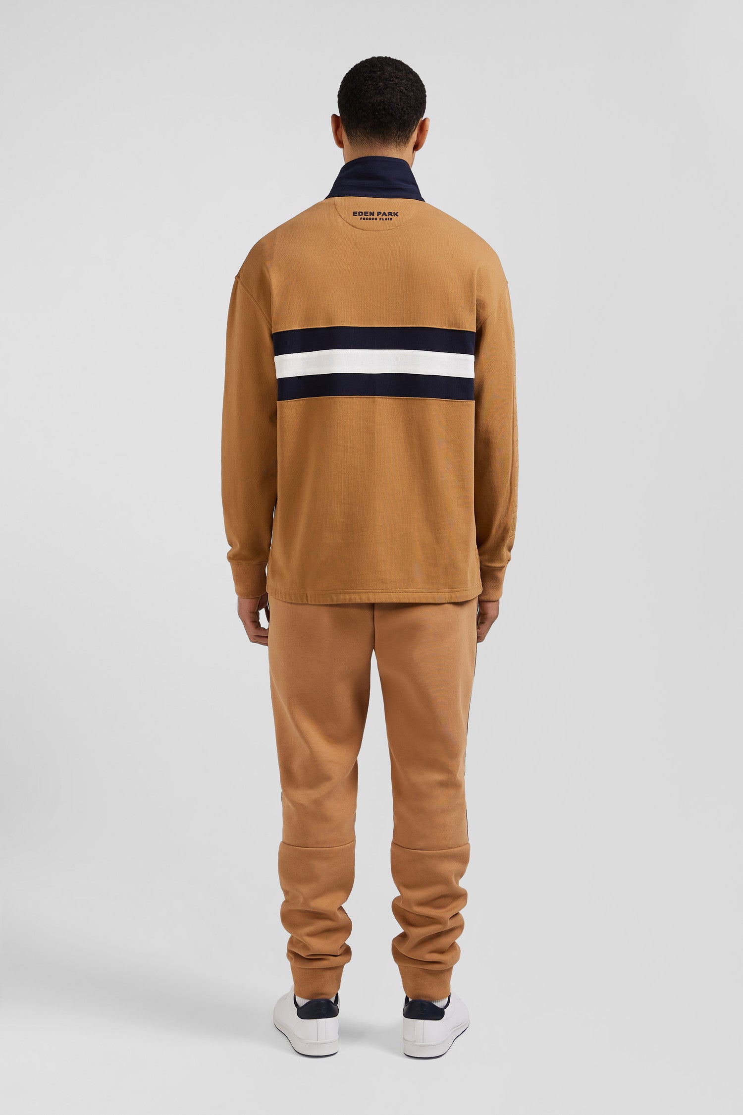 Maillot manches longues en coton camel brodé coupe Relaxed