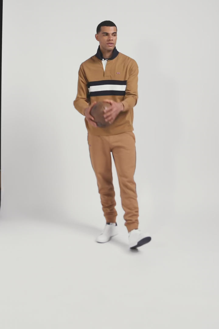 Inspiré des maillots de rugby que notre Maison a retravaillé avec élégance grâce à son savoir-faire, ce maillot manches longues se pare de rayures appliquées à l'aide d'une technique de coupé-cousu et d'une broderie à effet matelassée au nom de notre Maison en ton sur ton sur la manche. Réalisé en coton jersey dans une coupe Relaxed plus ample, ce maillot homme proposé dans 3 coloris arbore un col en twill de coton et une sérigraphie soignée discrètement placée sur sa manche droite.