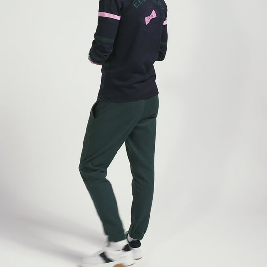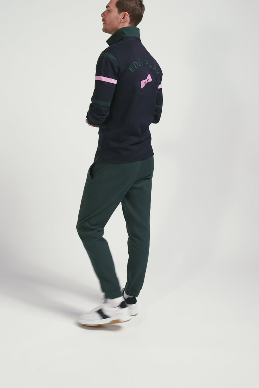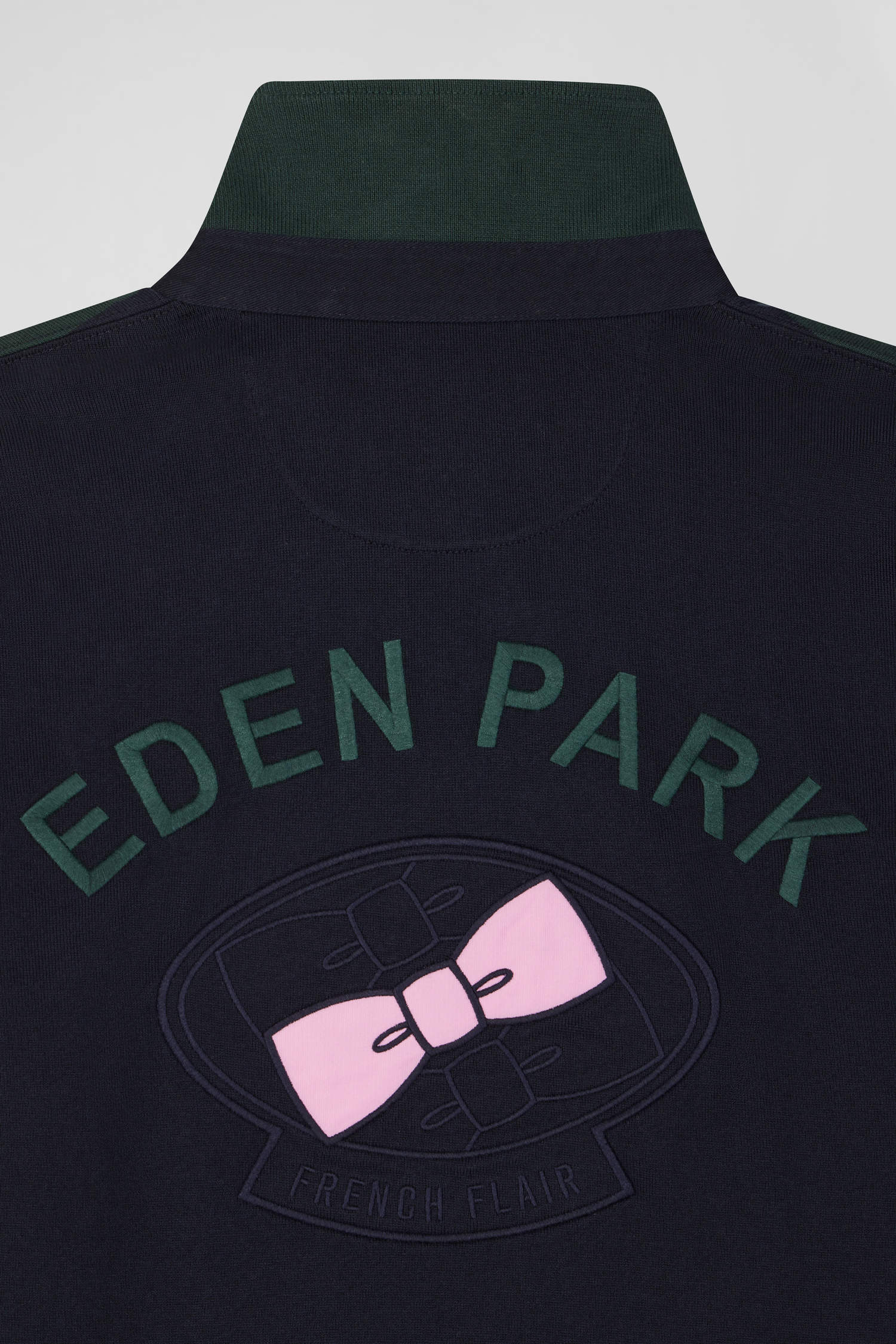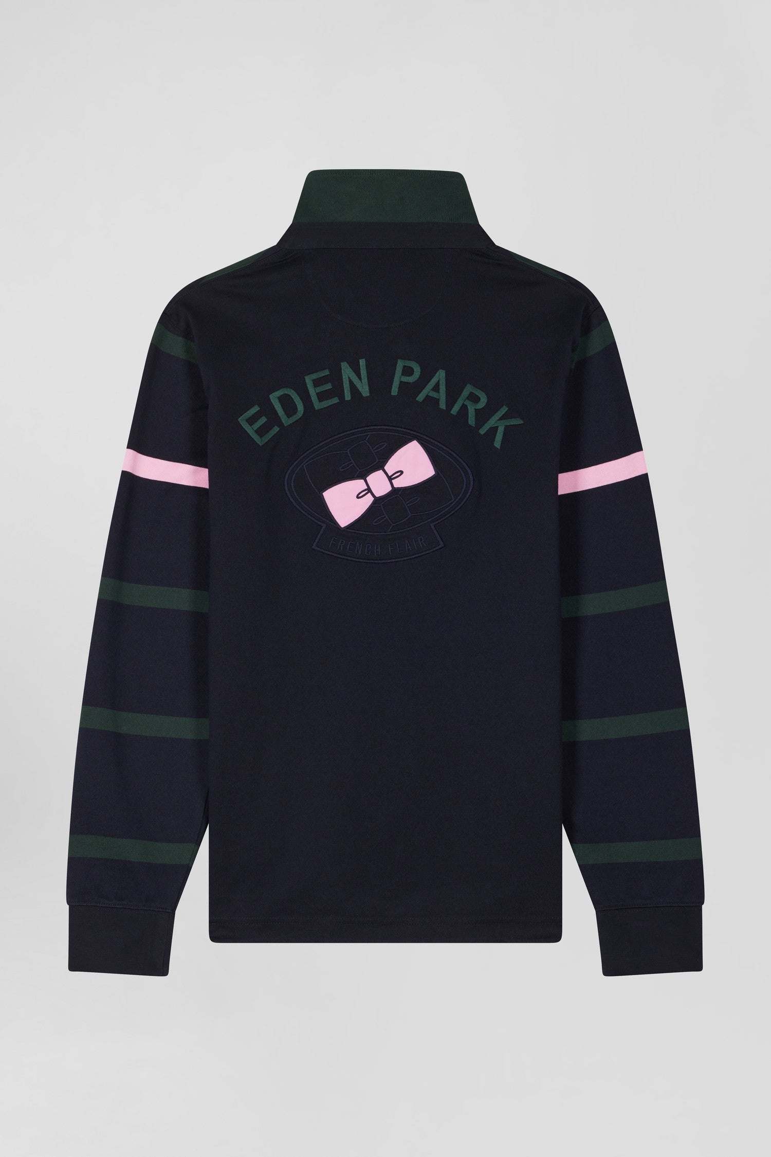 Maillot manches longues en coton cerclé vert broderie dos coupe Regular