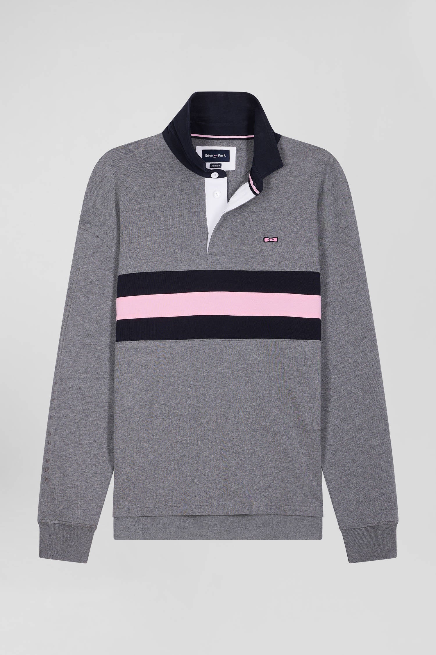 Inspiré des maillots de rugby que notre Maison a retravaillé avec élégance grâce à son savoir-faire, ce maillot manches longues se pare de rayures appliquées à l'aide d'une technique de coupé-cousu et d'une broderie à effet matelassée au nom de notre Maison en ton sur ton sur la manche. Réalisé en coton jersey dans une coupe Relaxed plus ample, ce maillot homme proposé dans 3 coloris arbore un col en twill de coton et une sérigraphie soignée discrètement placée sur sa manche droite.