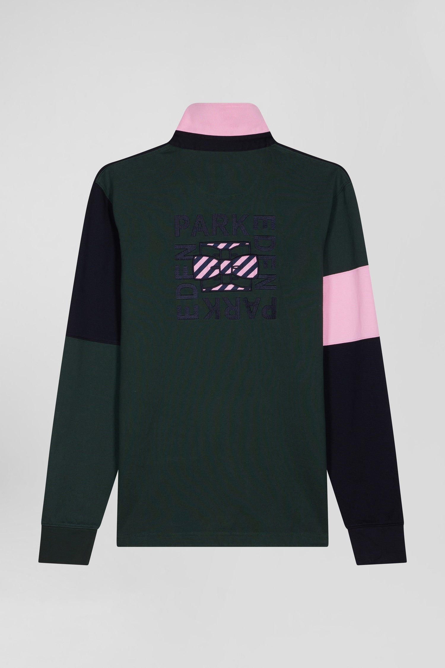 Maillot manches longues en coton vert broderie et applications de tissus cravate coupe Regular