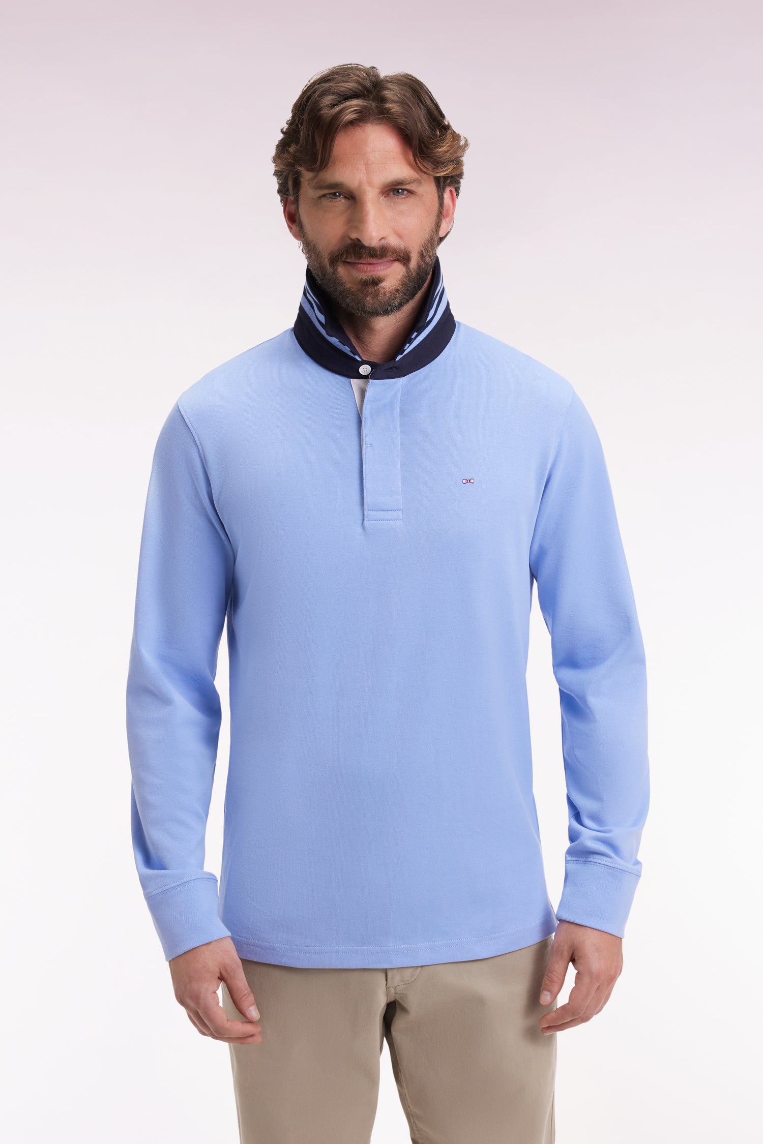 Maillot manches longues en jersey ciel dessous de col rayé