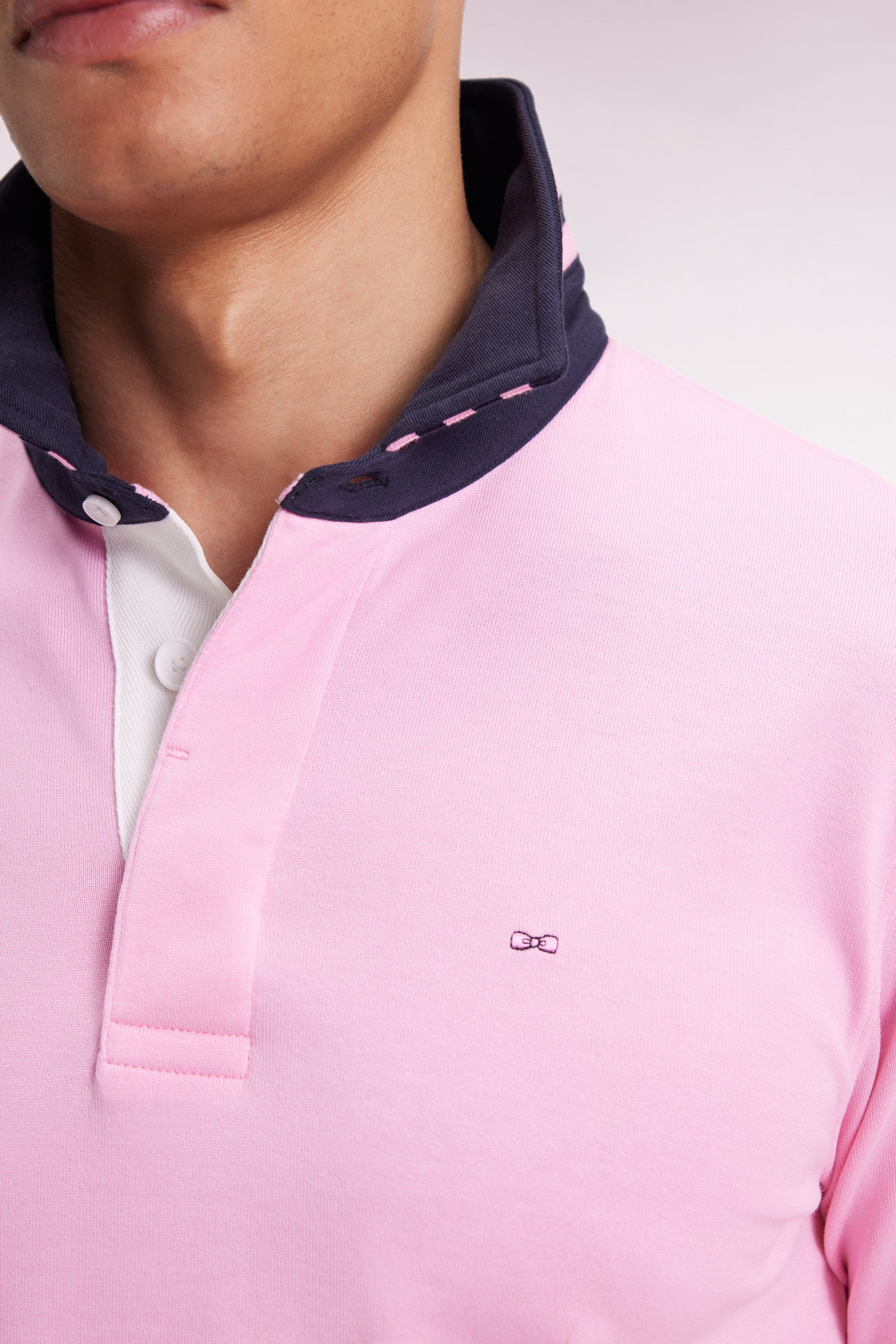 Maillot manches longues en jersey rose dessous de col rayé