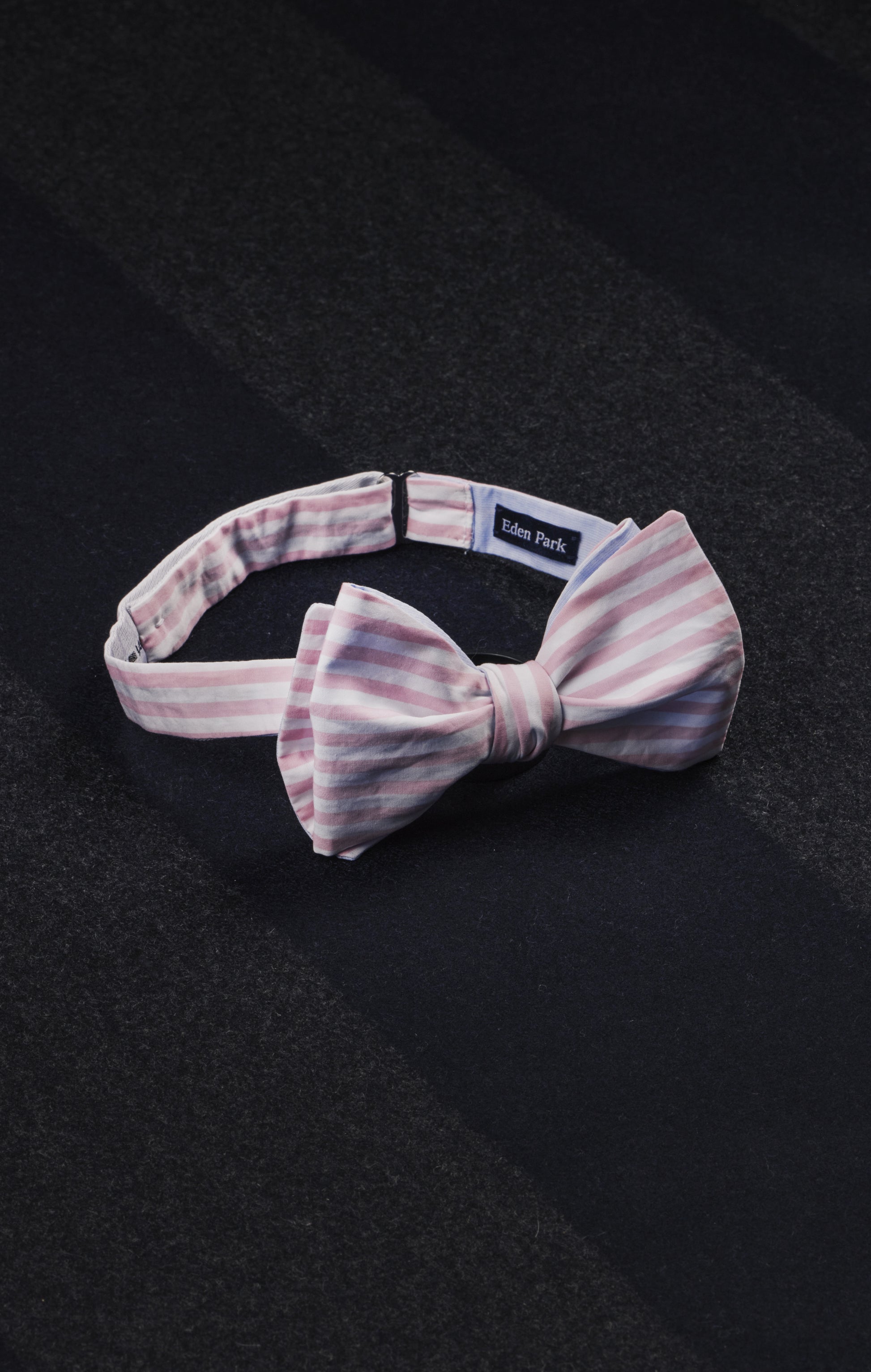 Nœud papillon rayé rose et blanc upcyclé Pap'Atelier