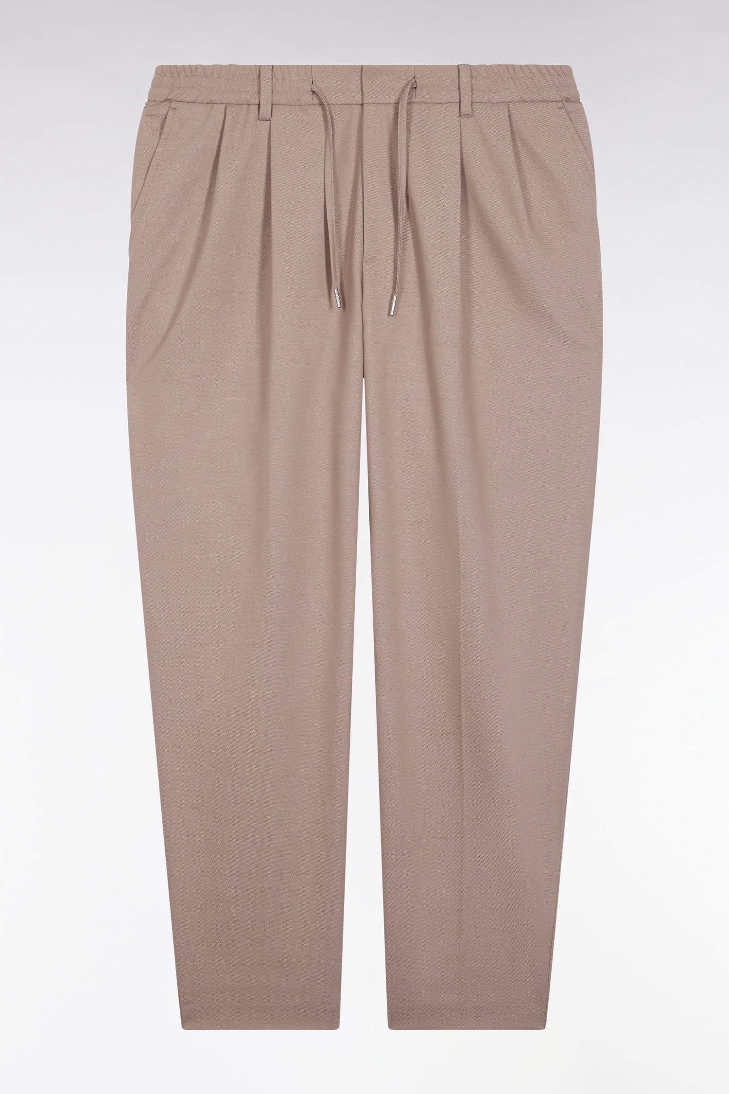 Ce pantalon à pinces revisite l'esprit tailoring dans une version plus décontractée. Sa taille élastiquée à cordon de serrage et ses plis marqués à l’avant assurent confort et fluidité, tandis que sa coupe légèrement fuselée conserve une élégance naturelle