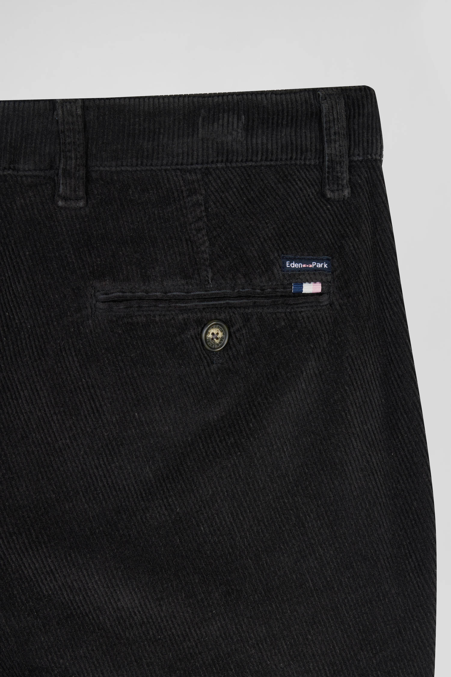 • Tissu cousu Eden Park au-dessus de la poche arrière avec ruban tricolore