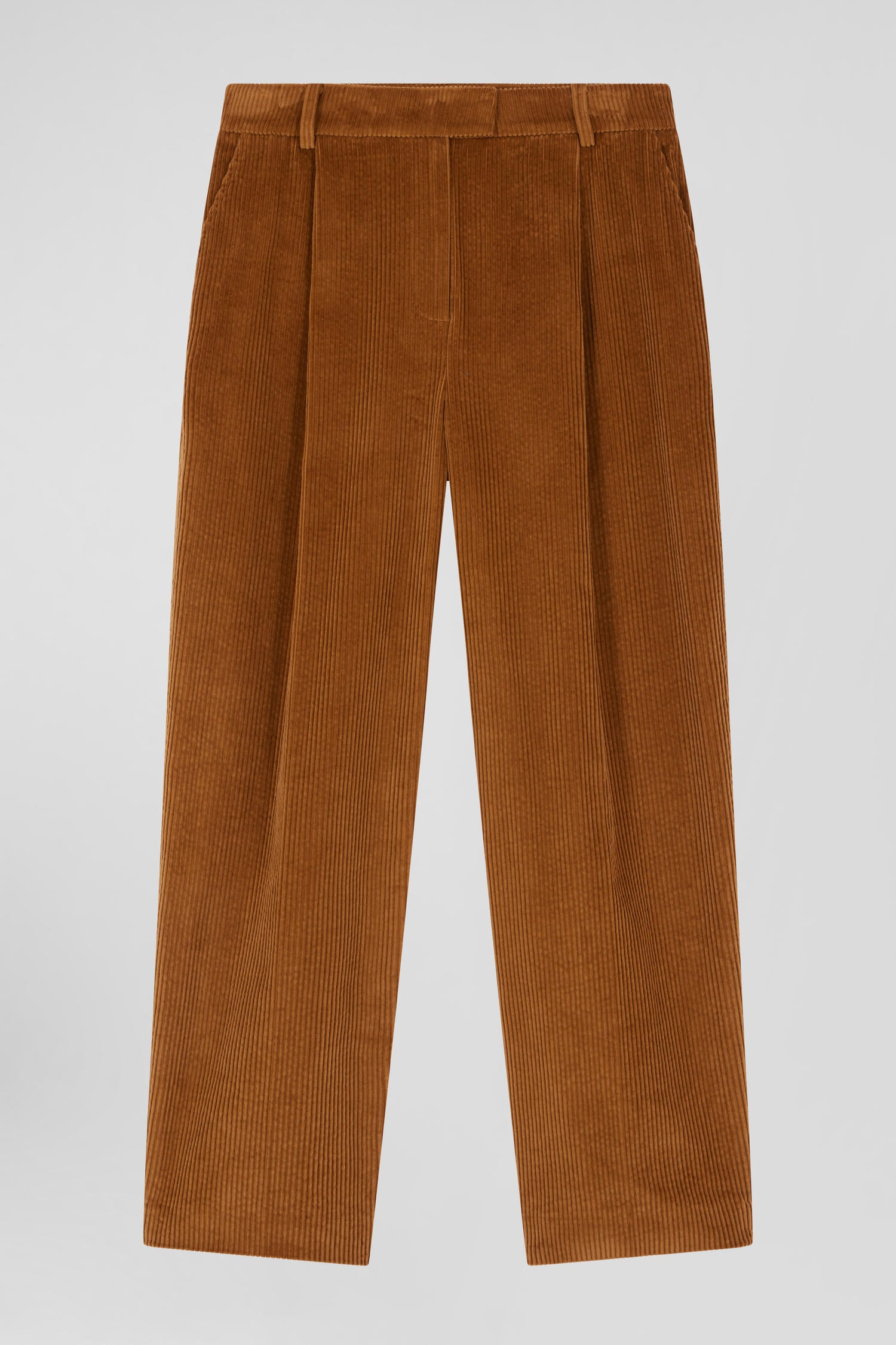 Pantalon en velours côtelé camel à carreaux coupe Modern
