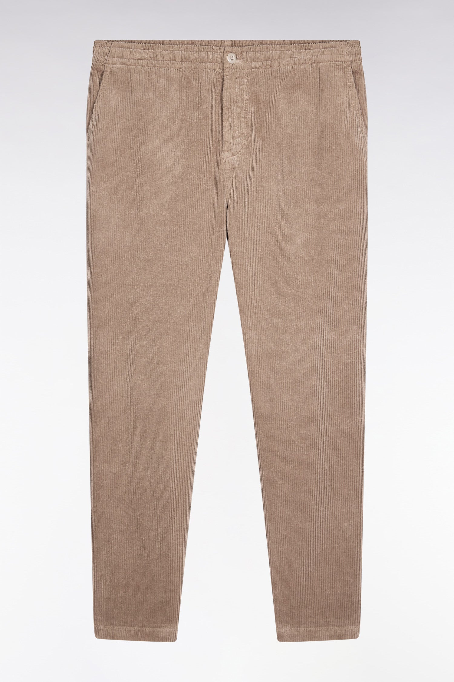 Pantalon taille élastique en velours côtelé beige coupe Modern
