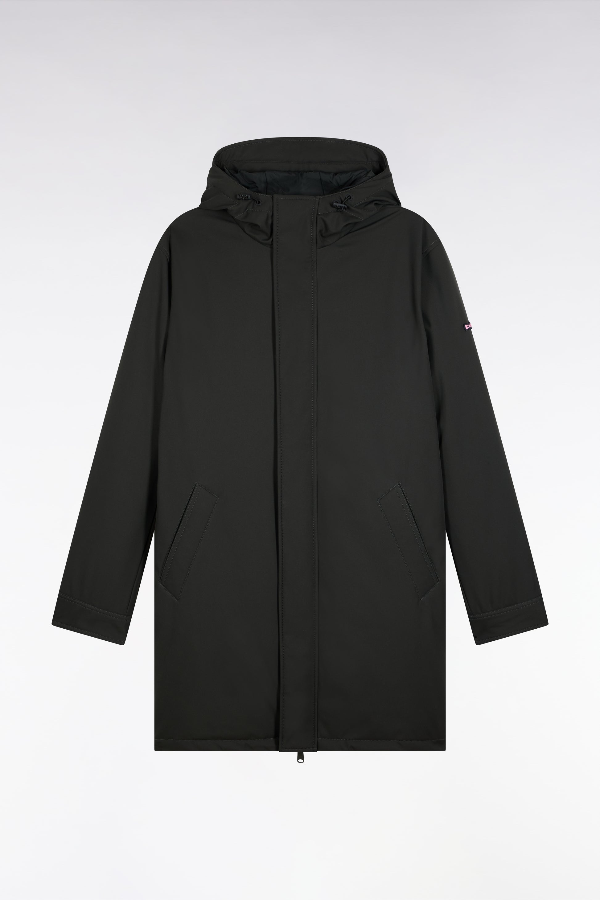 Déclinée en marine, kaki ou noir, cette parka longue en nylon mat incarne l’équilibre parfait entre sobriété urbaine et protection contre les éléments. Son matelassage intérieur offre un confort thermique idéal pour la mi-saison comme pour l’hiver. Sa silhouette s’ajuste grâce à un lien de serrage discret dans le dos et à la capuche. Le zip à double curseur dissimulé sous la patte de boutonnage, les poches pratiques et les finitions iconiques renforcent l’allure fonctionnelle et raffinée de cette parka masculine dotée de fournitures soft touch