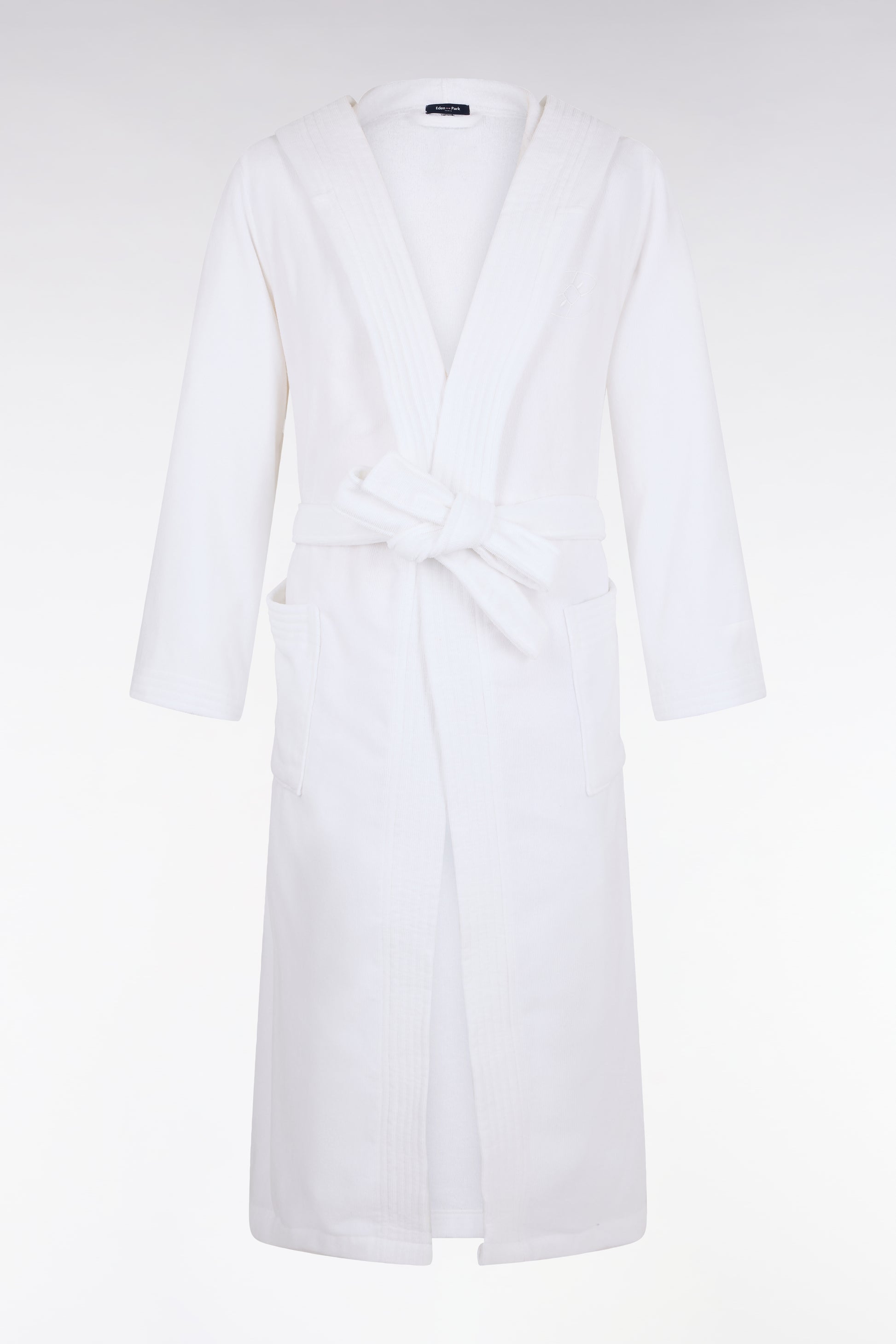 Peignoir à capuche en coton éponge mélangé blanc