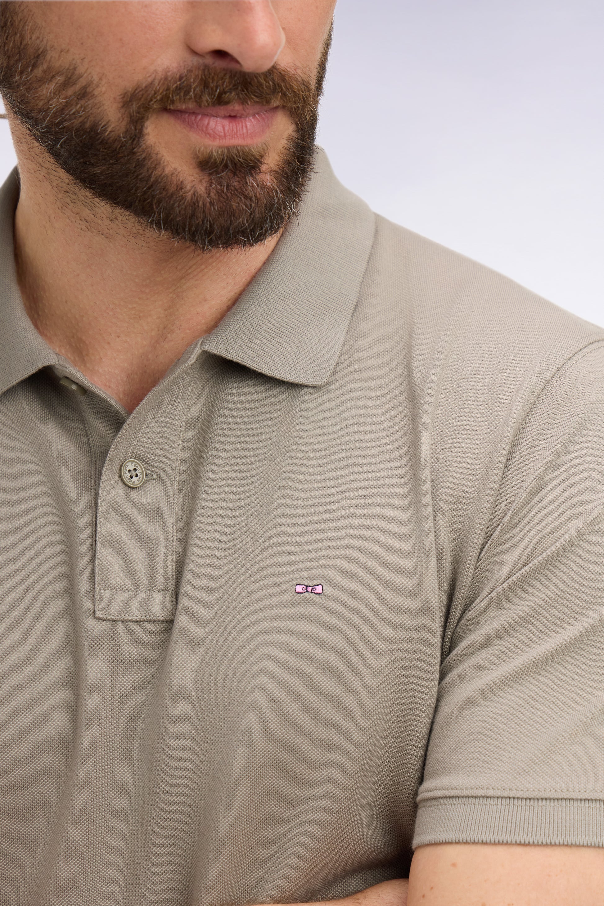Polo à manches courtes en coton kaki coupe regular