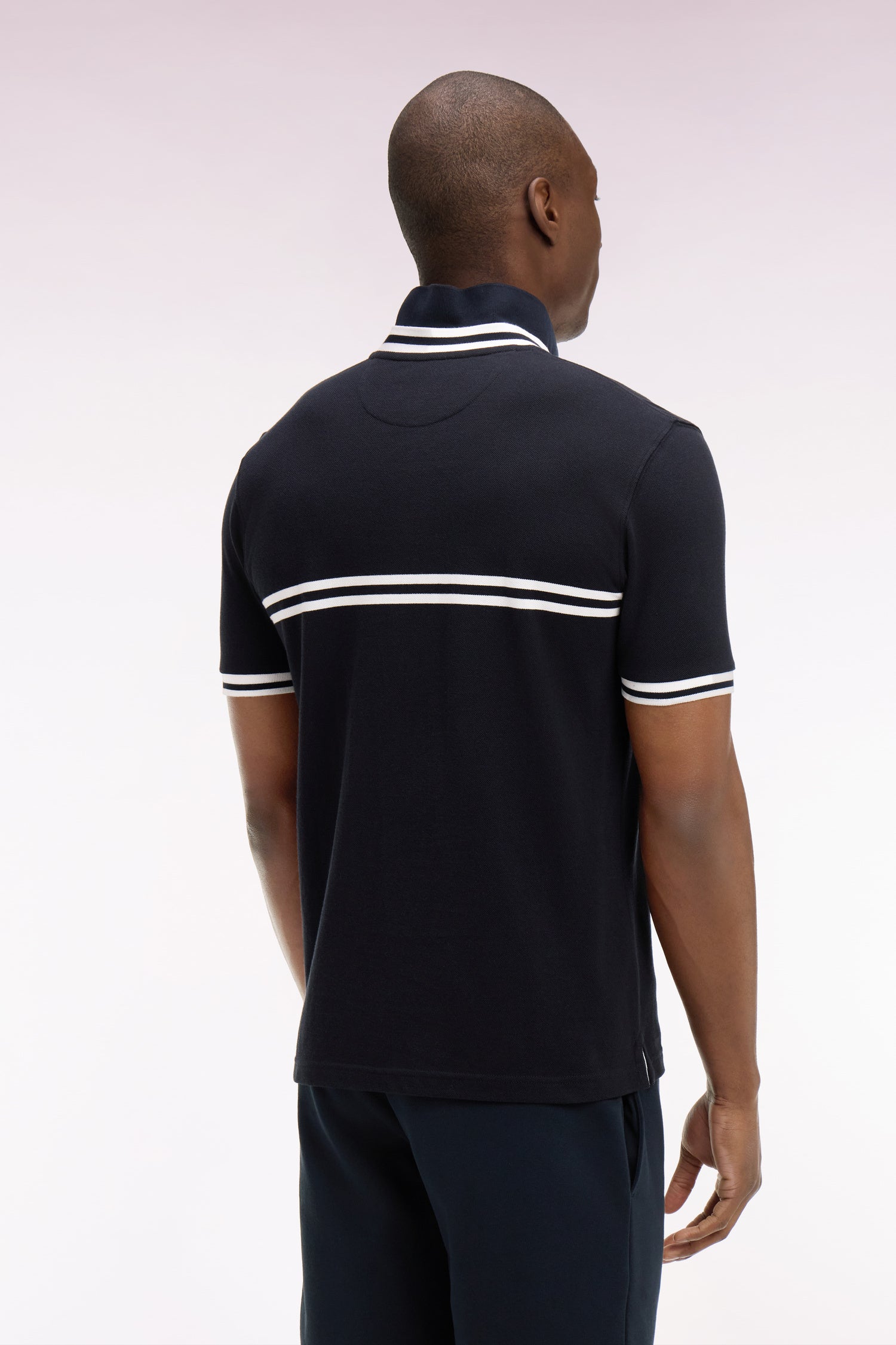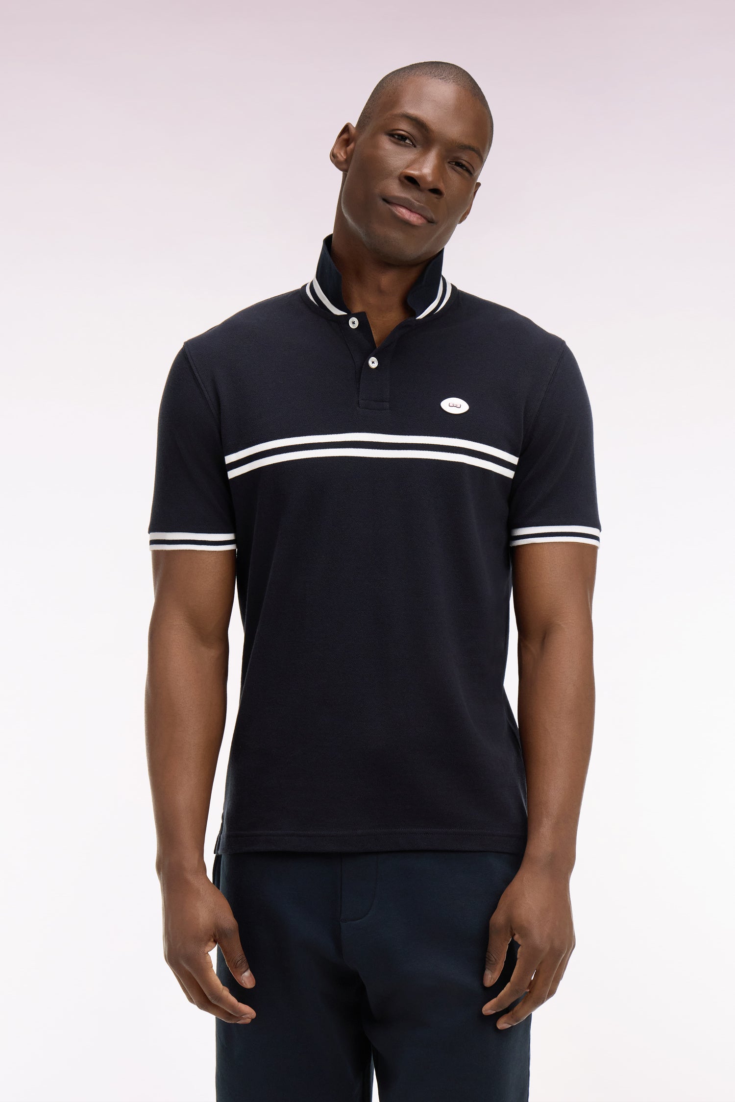 Polo à manches courtes en coton marine à rayures blanches coupe regular