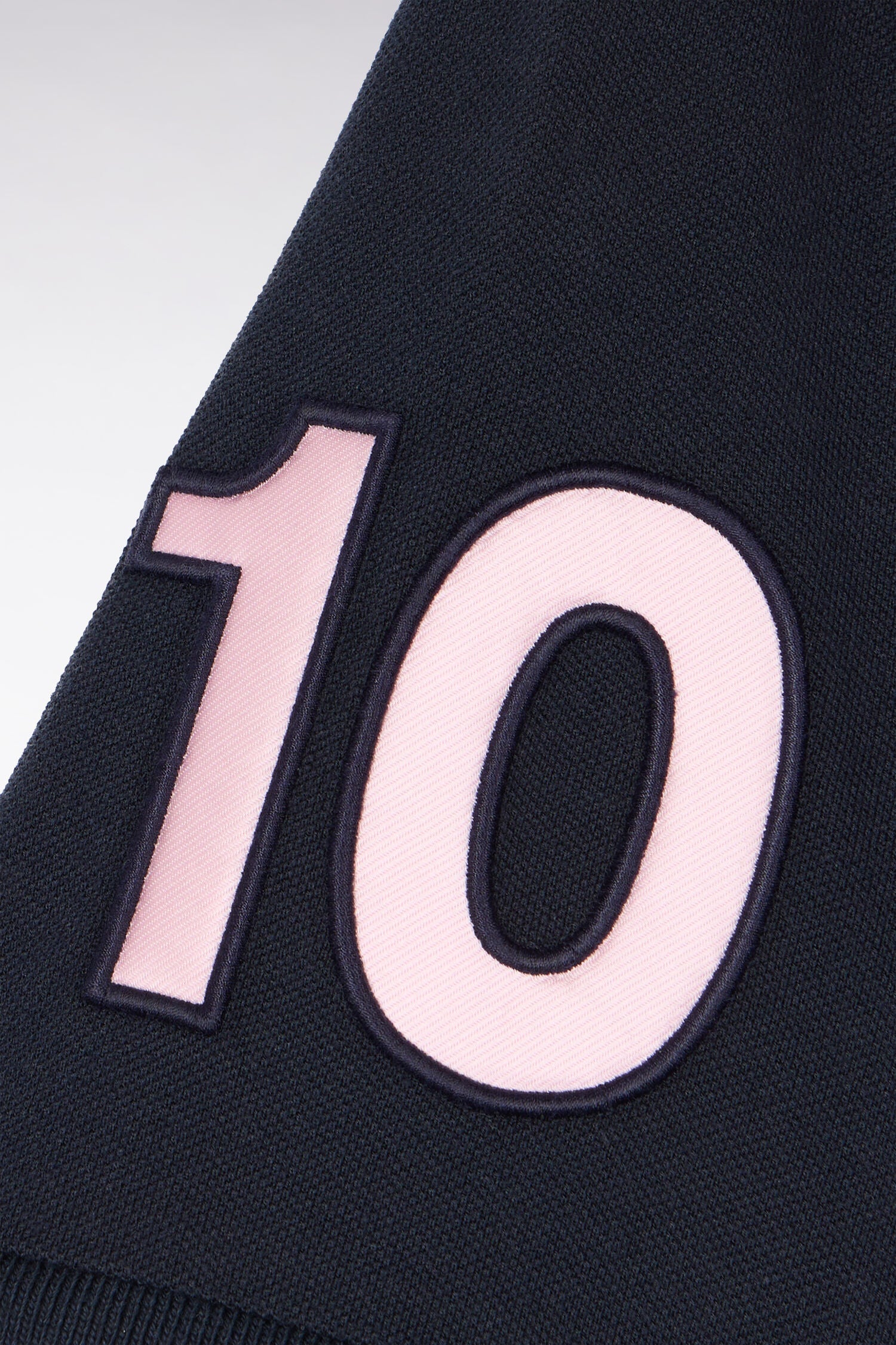 Ce polo masculin en piqué de coton coupe regular célèbre l’ADN rugby de la Maison grâce à sa large bande poitrine blanche, soulignée de passepoils marine qui structurent la silhouette. Le nœud papillon brodé et la broderie 10, enrichie d’une application en tissu cravate, renforcent son caractère identitaire. Son col et ses bas de manches en bords-côtes tricotés sont rehaussés d’un liseré contrasté, pour une touche élégante et sportive. Décliné dans les 4 coloris pastel signature de la saison, toujours associé à l'intemporel marine, ce polo à manches courtes incarne la modernité et la polyvalence du vestiaire sport chic Eden Park.