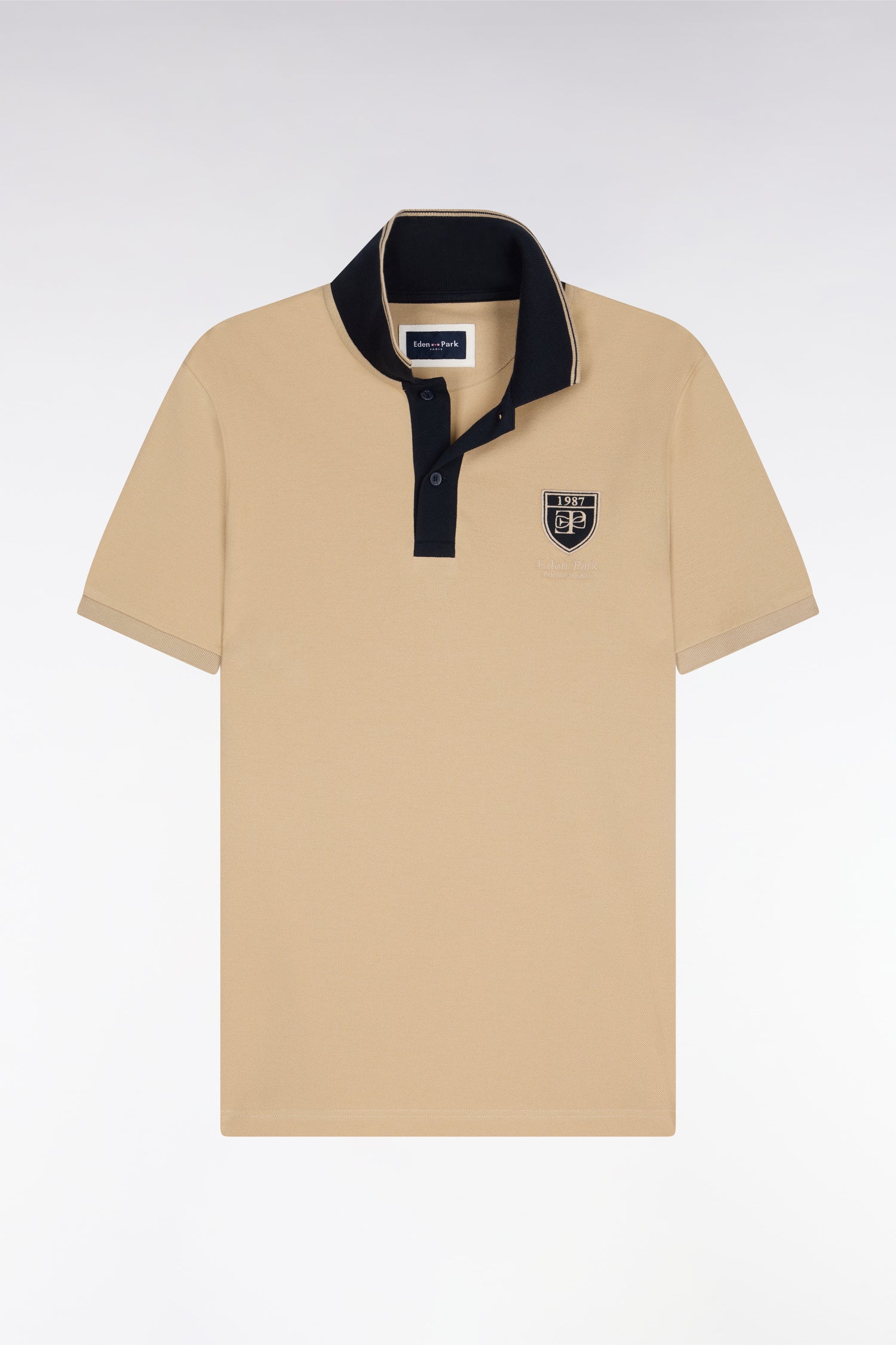 Ce polo en piqué de coton s’impose comme une pièce raffinée du vestiaire sport chic grâce à son écusson poitrine réalisé dans un esprit Ivy League, clin d’œil à une esthétique quiet luxury très actuelle. Sa coupe regular droite et son col polo marine finement rayé, prolongé par une patte de boutonnage assortie, apportent structure et élégance, tandis que les bas de manches en maille unie renforcent une allure plus habillée. Décliné dans des coloris pastel intemporels, il se porte aussi bien avec un short coordonné qu’avec un jean brut, selon l’allure recherchée.