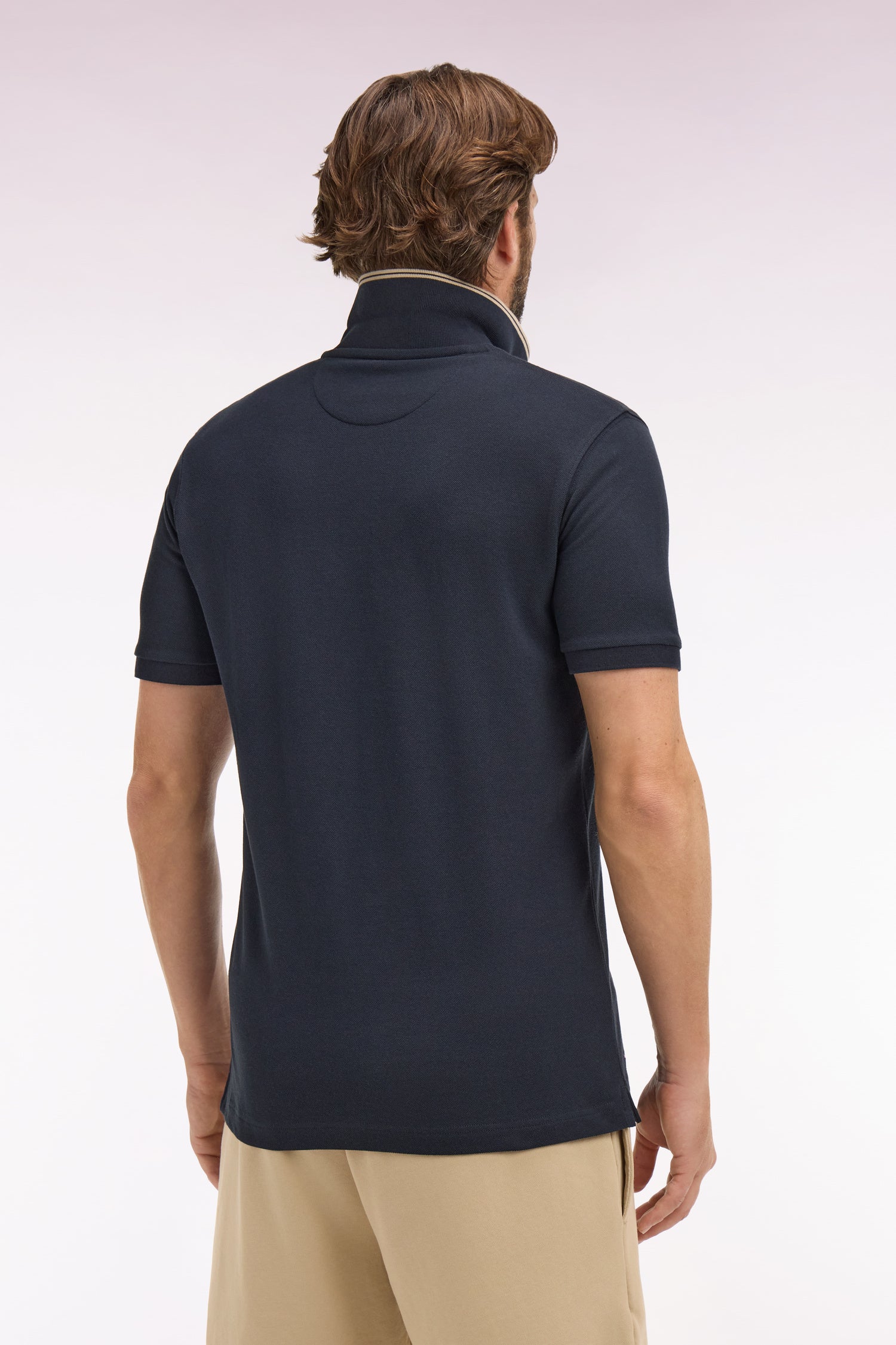 Ce polo en piqué de coton s’impose comme une pièce raffinée du vestiaire sport chic grâce à son écusson poitrine réalisé dans un esprit Ivy League, clin d’œil à une esthétique quiet luxury très actuelle. Sa coupe regular droite et son col polo marine finement rayé, prolongé par une patte de boutonnage assortie, apportent structure et élégance, tandis que les bas de manches en maille unie renforcent une allure plus habillée. Décliné dans des coloris pastel intemporels, il se porte aussi bien avec un short coordonné qu’avec un jean brut, selon l’allure recherchée.