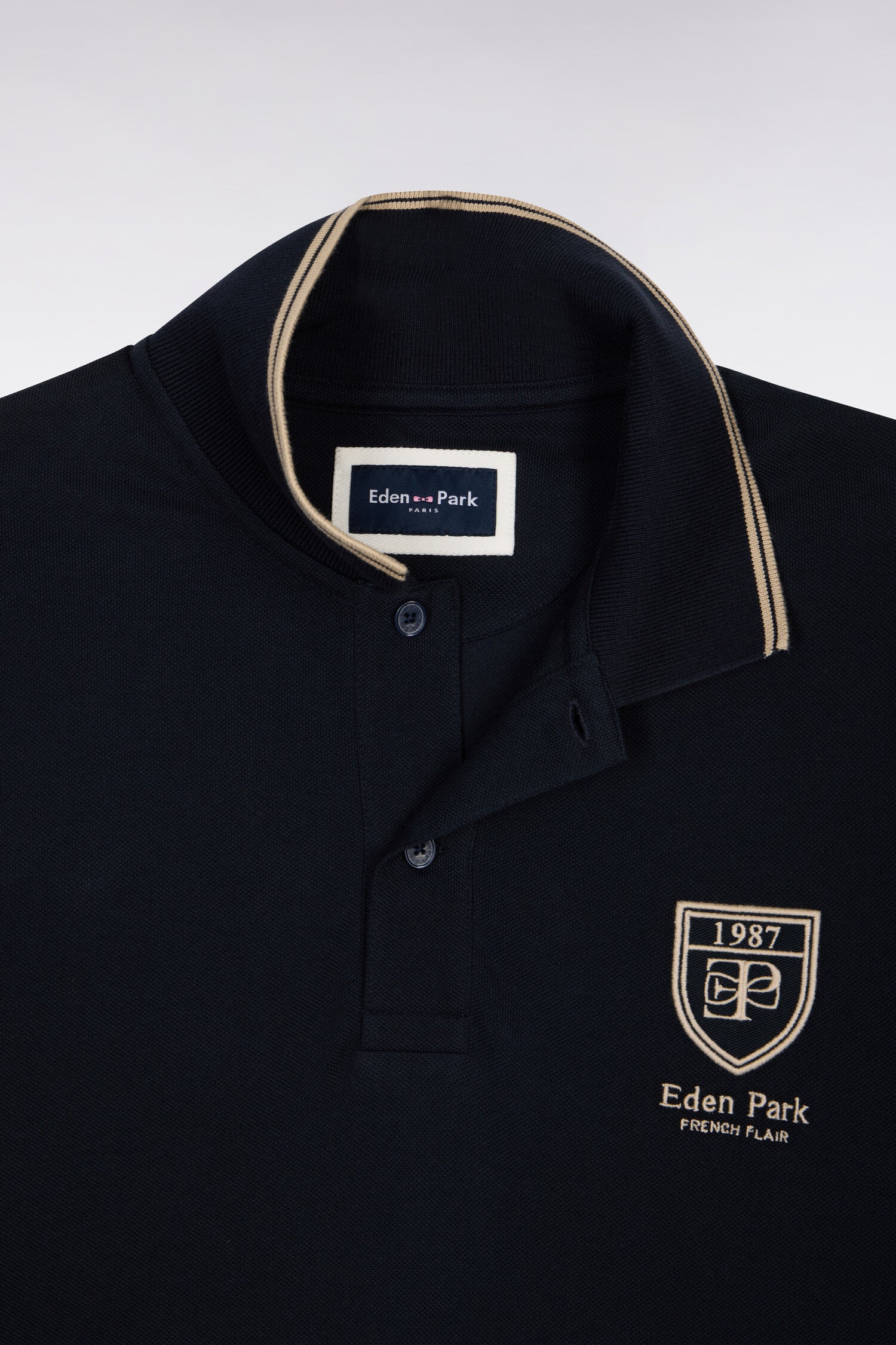 Polo à manches courtes en piqué coton marine écusson EP