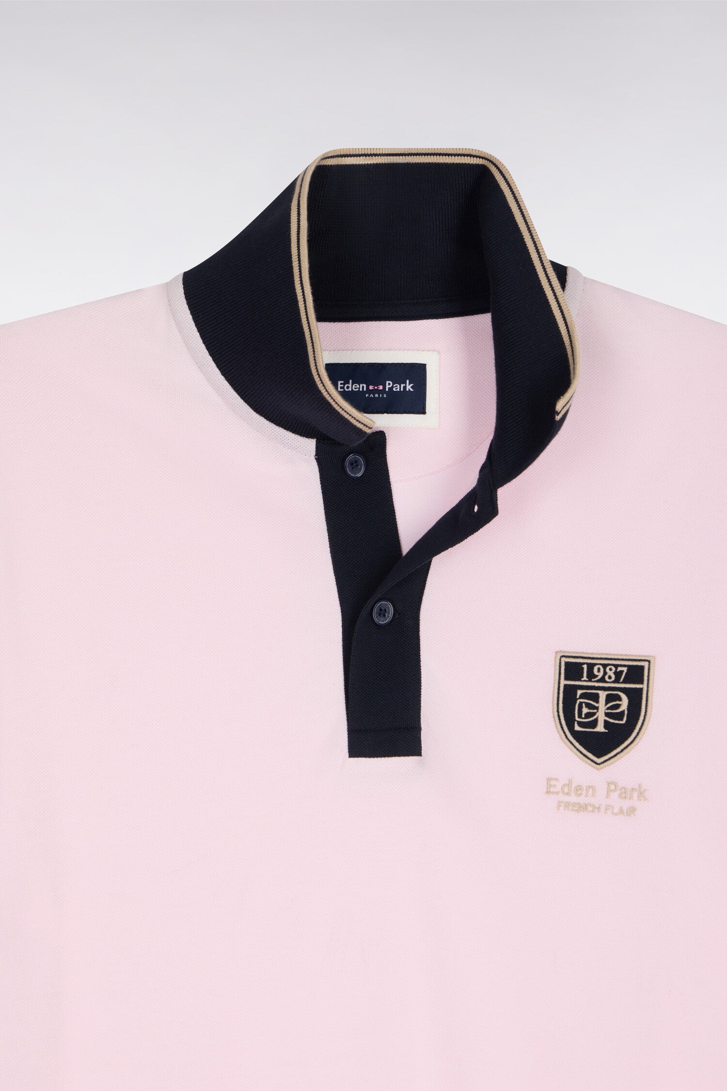 Polo à manches courtes en piqué coton rose écusson EP