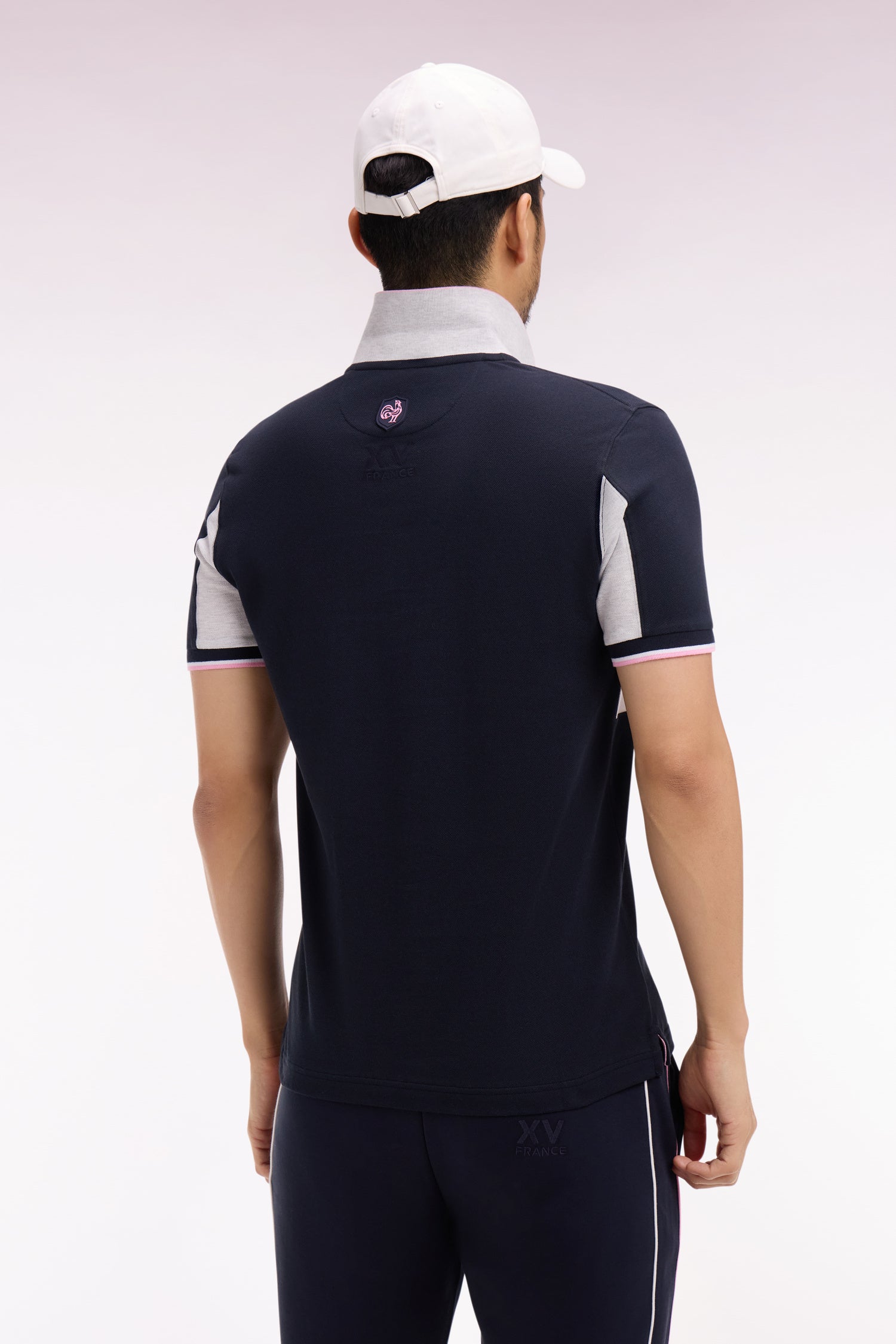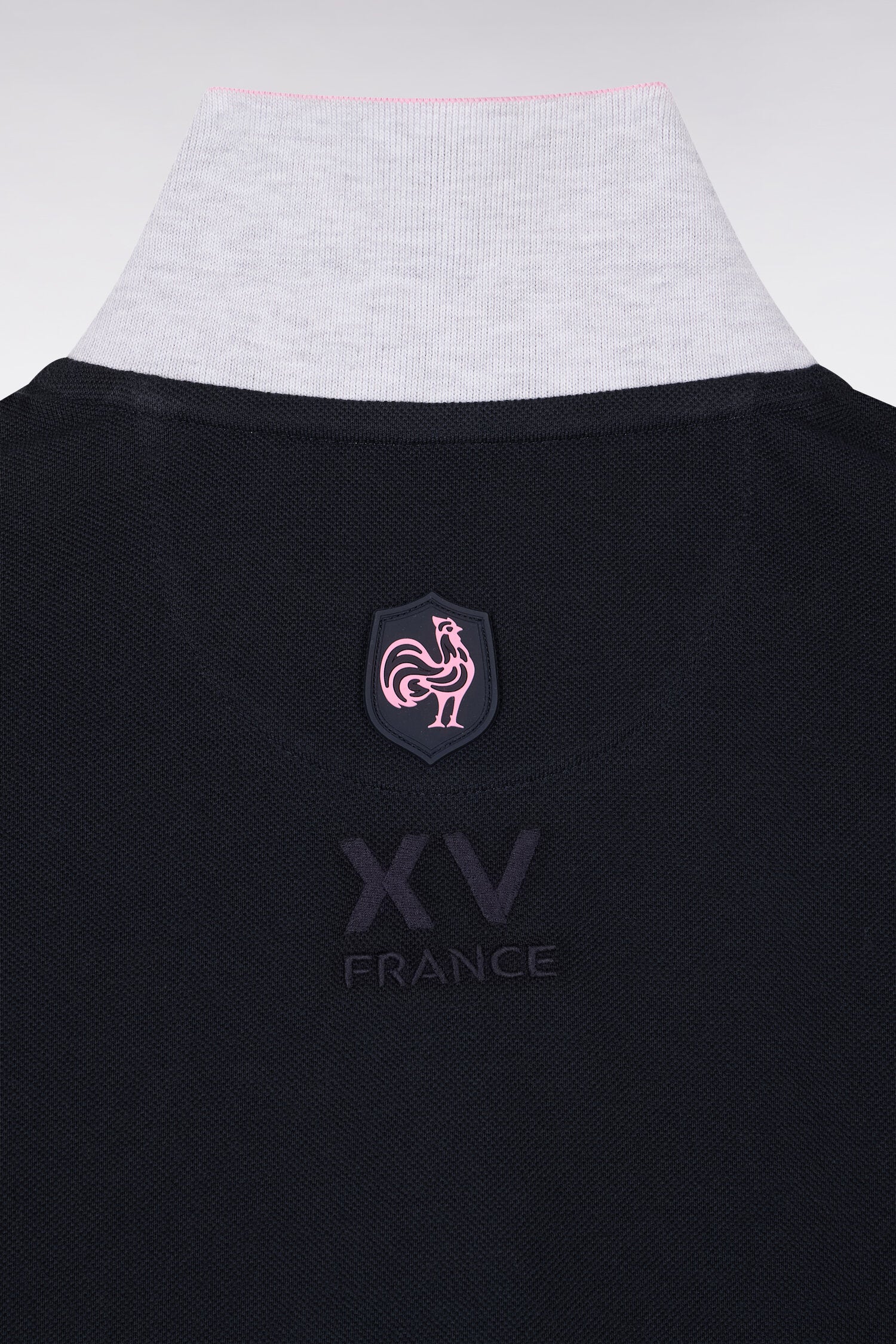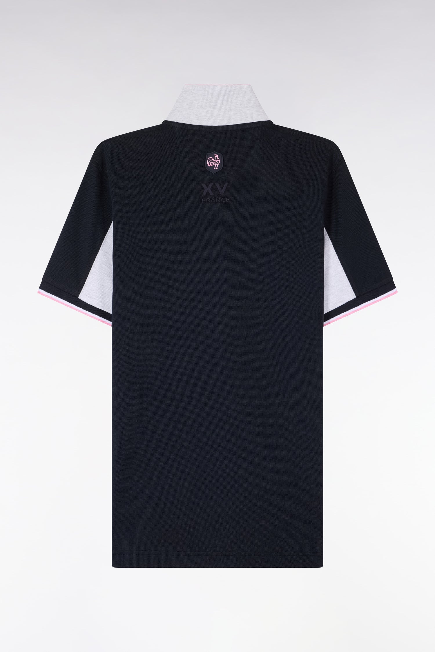 Craquez pour ce polo XV de France disponible en marine ou en blanc. Avec ses bordures de manches et de col tricolores marine, blanche et rose, son dessous de col chiné et sa large bande contrastée sur la poitrine, ce modèle allie élégance sport chic et dynamisme. Détail unique : ce polo ne s'agrémente pas d'une patte de boutonnage mais d'un zip soigné pour une allure plus urbaine.