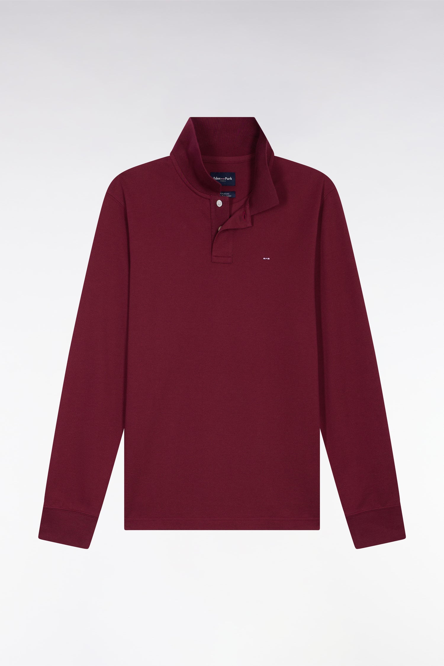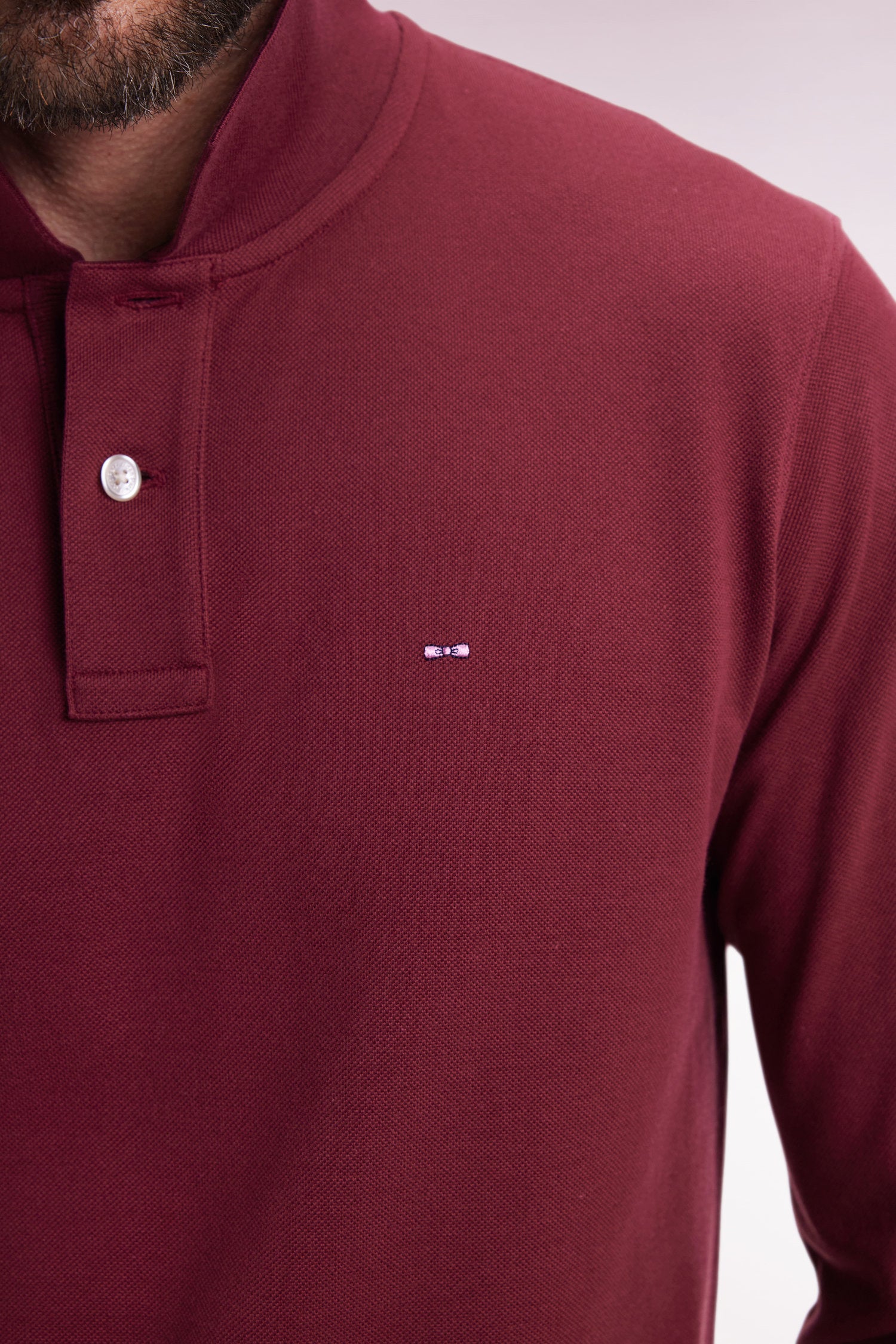 Polo à manches longues en coton Pima bordeaux coupe droite